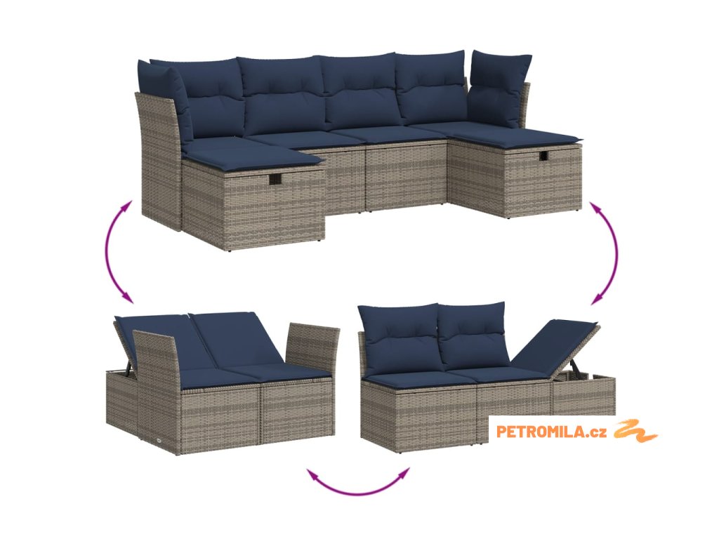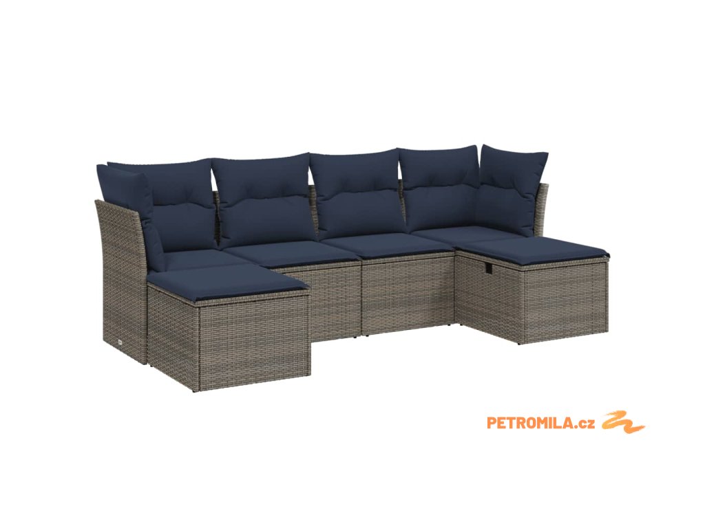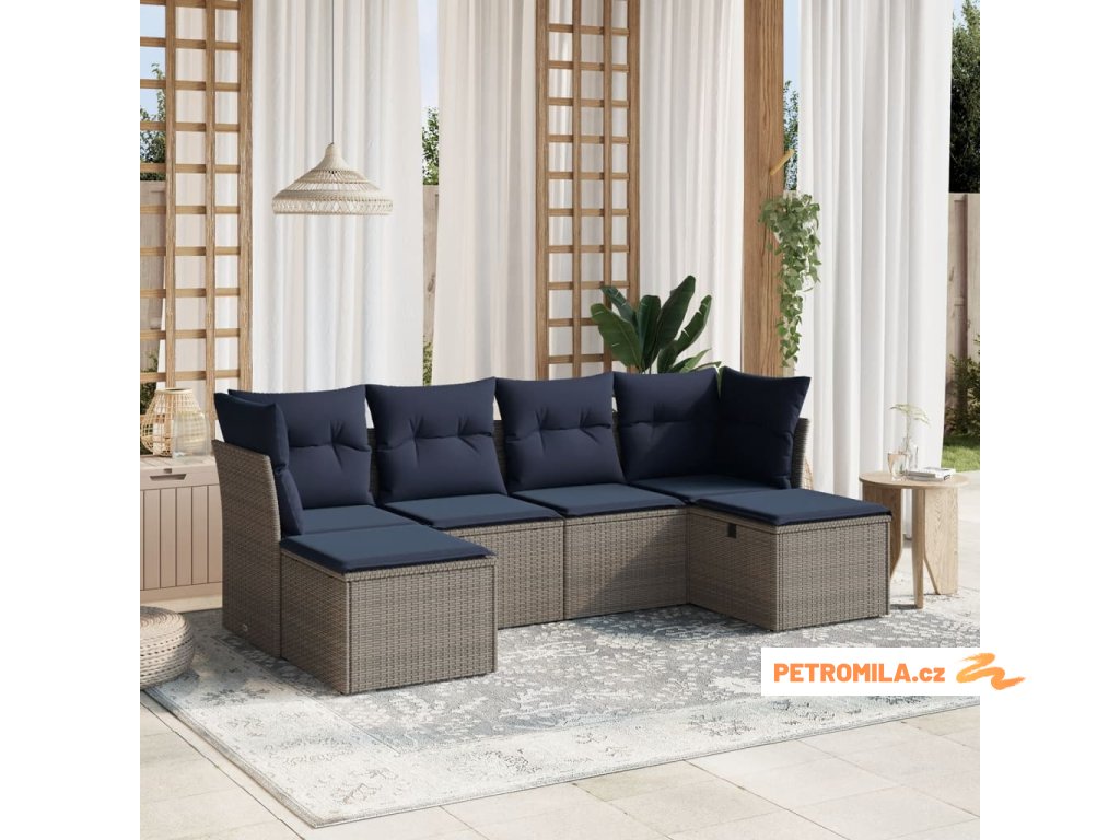 6dílná zahradní sedací souprava s poduškami šedá polyratan