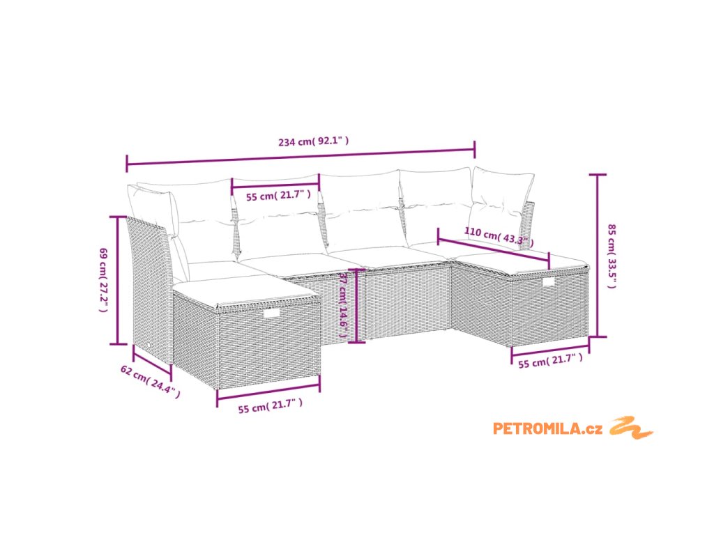 Sada zahradních pohovek s polštářem 6 pcs Béžová Poly ratan