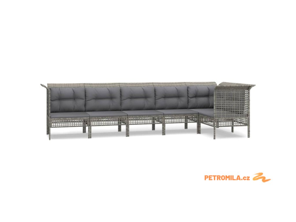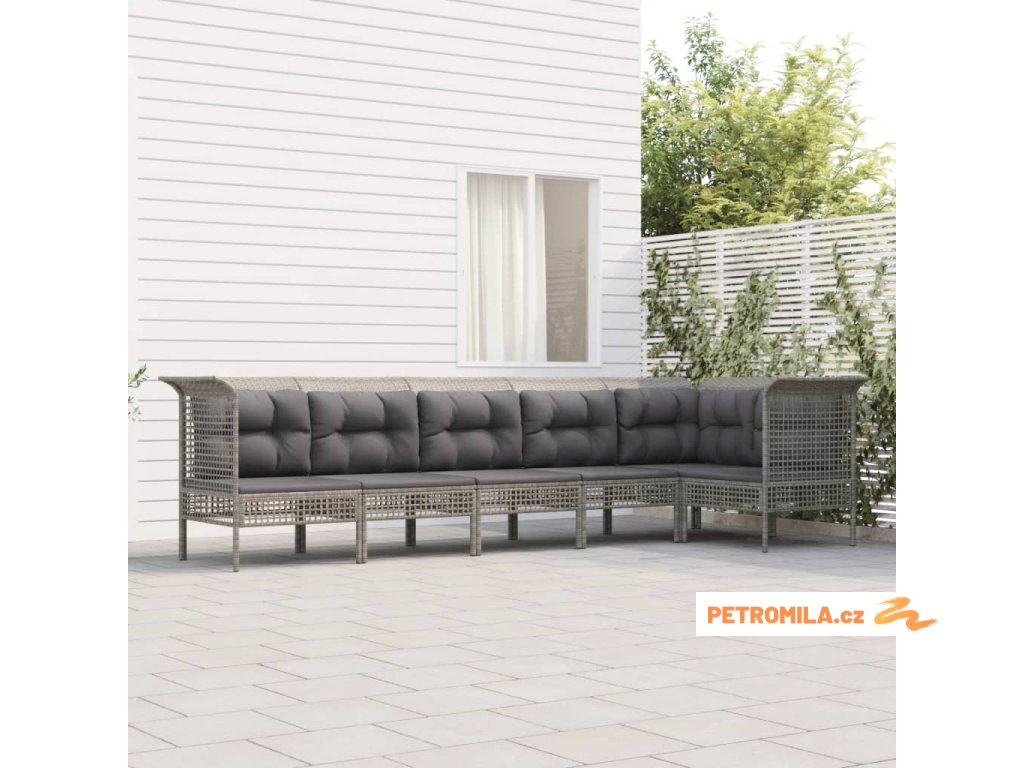 6dílná zahradní sedací souprava s poduškami šedá polyratan