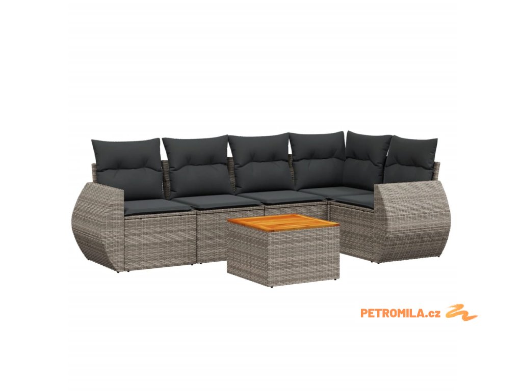 6dílná zahradní sedací souprava s poduškami šedá polyratan