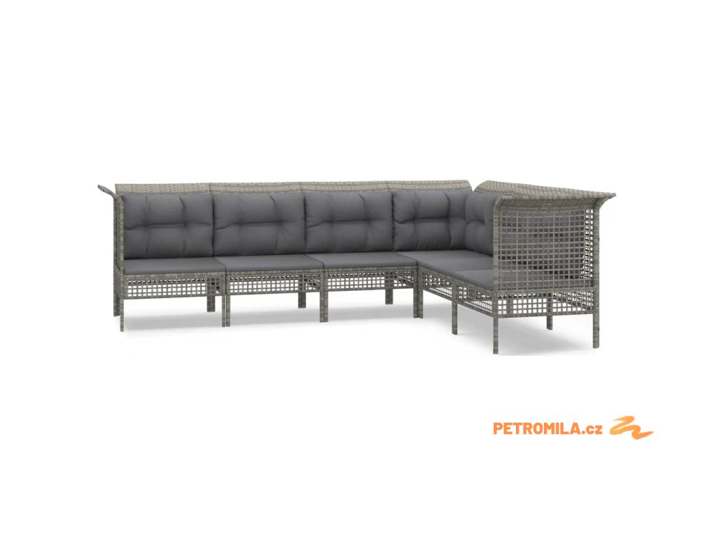 6dílná zahradní sedací souprava s poduškami šedá polyratan