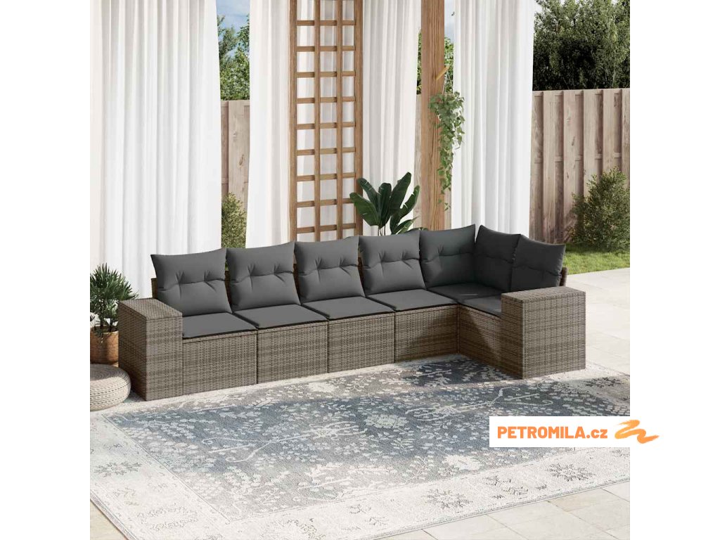 6dílná zahradní sedací souprava s poduškami šedá polyratan