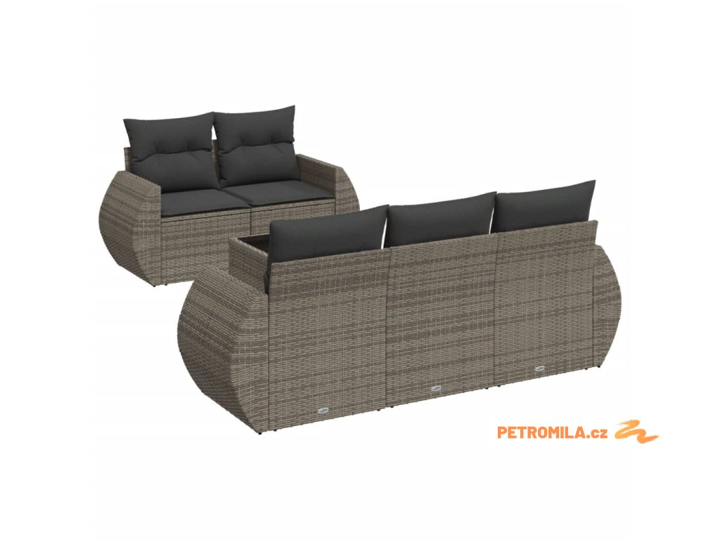 6dílná zahradní sedací souprava s poduškami šedá polyratan