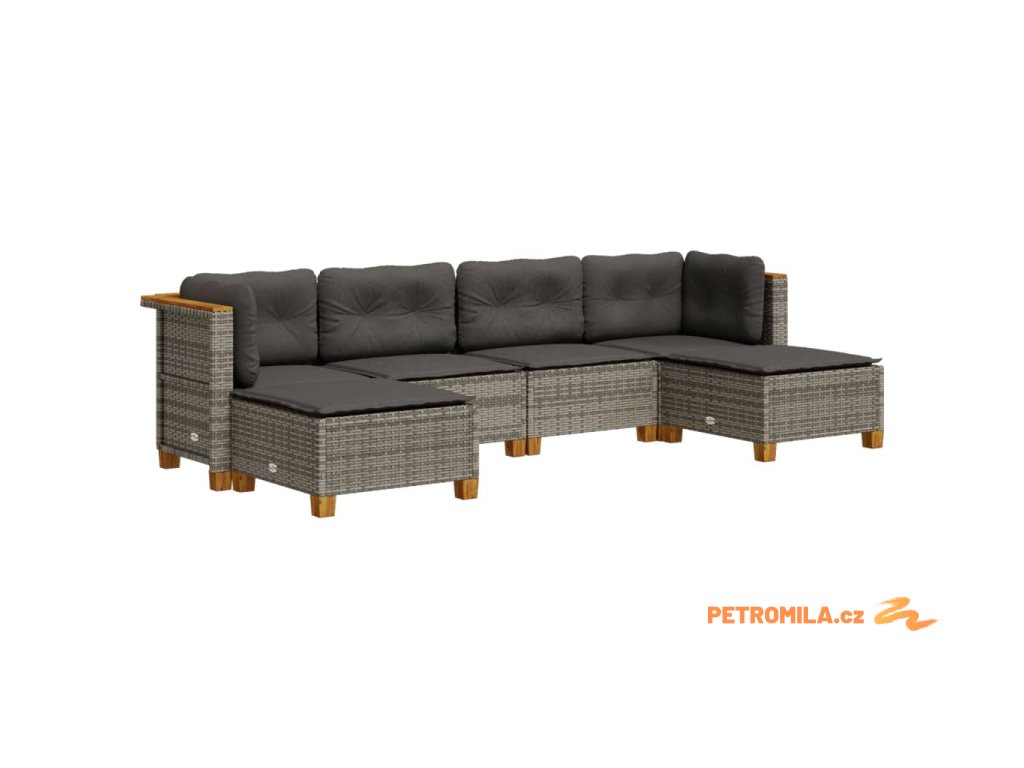 6dílná zahradní sedací souprava s poduškami šedá polyratan