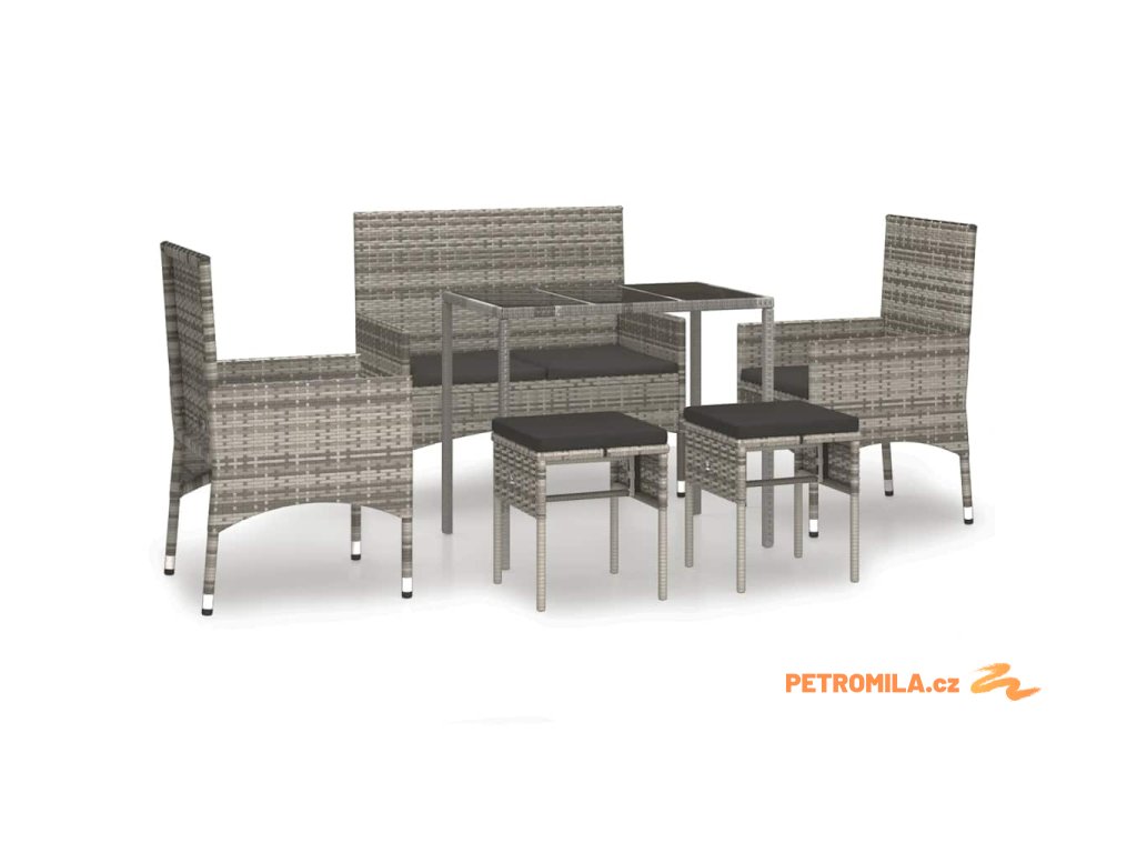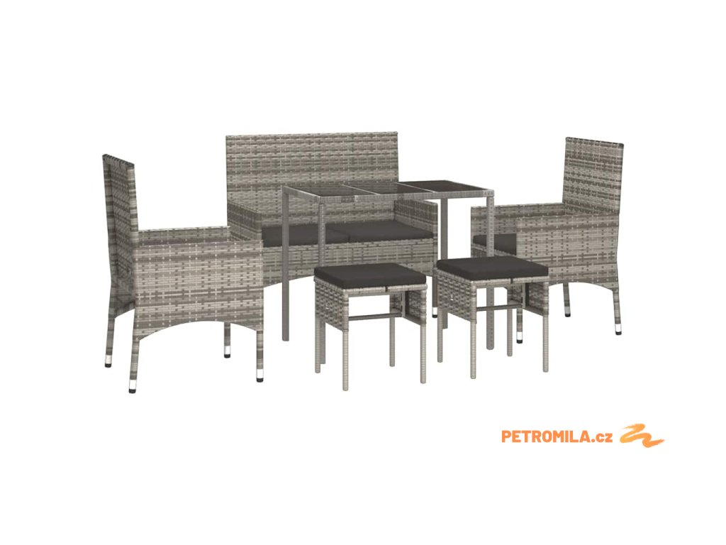 6dílná zahradní sedací souprava s poduškami šedá polyratan