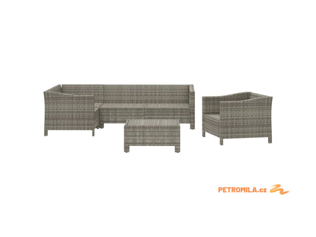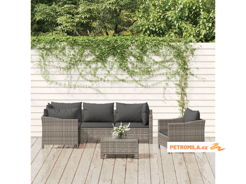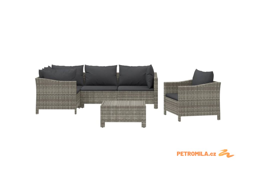 6dílná zahradní sedací souprava s poduškami šedá polyratan