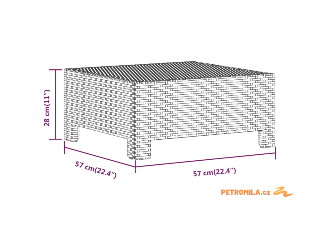 - Rozměry: 57 x 57 x 28 cm (Š x H x V)