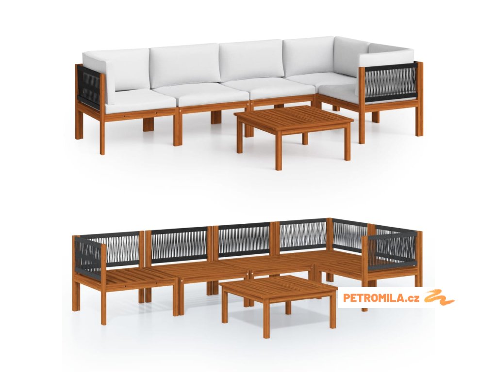 Zahradní pohovka se vyznačuje propracovanými lanovými opěradly, která dodávají sofistikovaný nádech každému venkovnímu prostoru. Tato zahradní sedací souprava je vyrobena z masivního akáciového dřeva, tropického tvrdého dřeva, které je odolné vůči povětrnostním vlivům a velmi trvanlivé. Díky olejové povrchové úpravě má sada zahradního nábytku teplou barvu a snadno se čistí a udržuje. Součástí balení jsou také sedáky a opěradla s tlustým polstrováním pro maximální pohodlí při odpočinku.