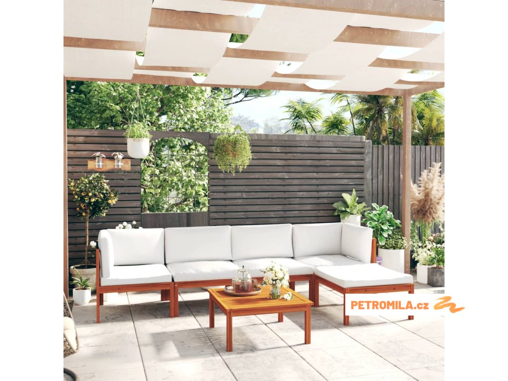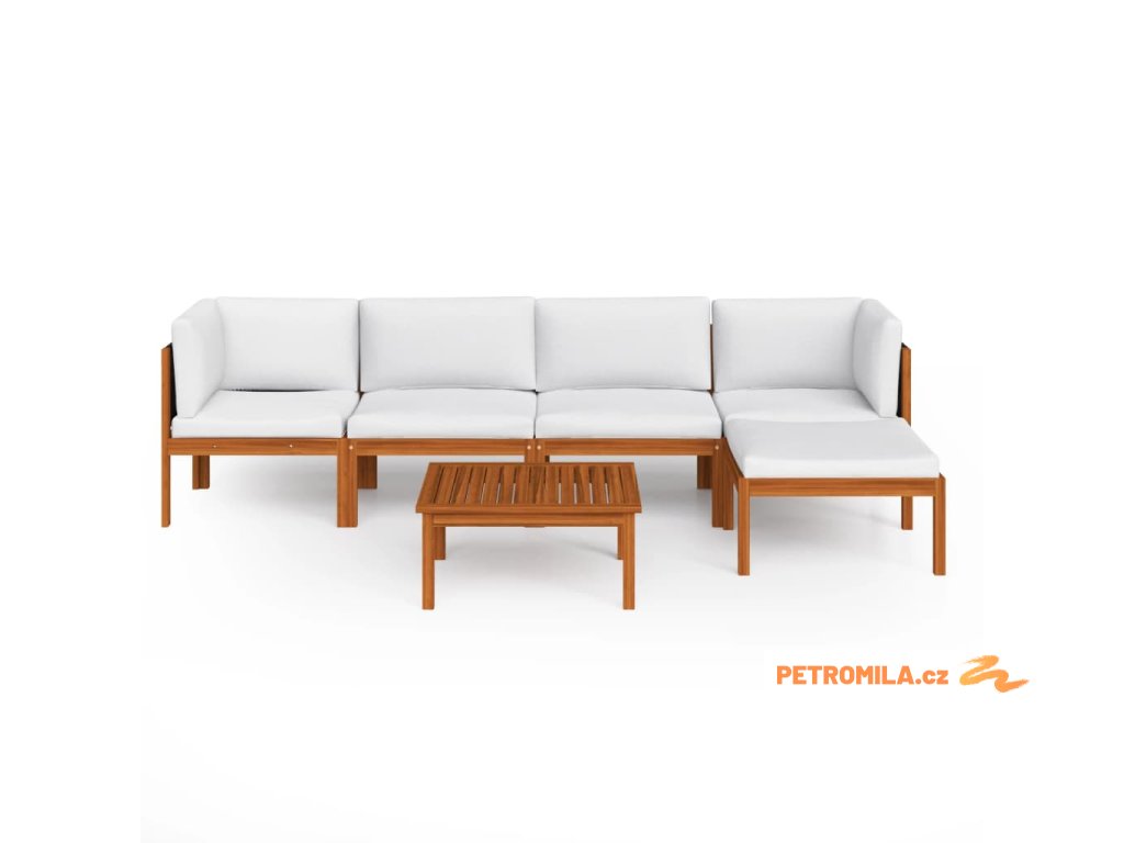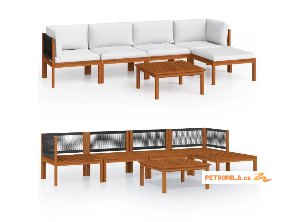 6dílná zahradní sedací souprava s polštáři krémové dřevo akácie a provaz