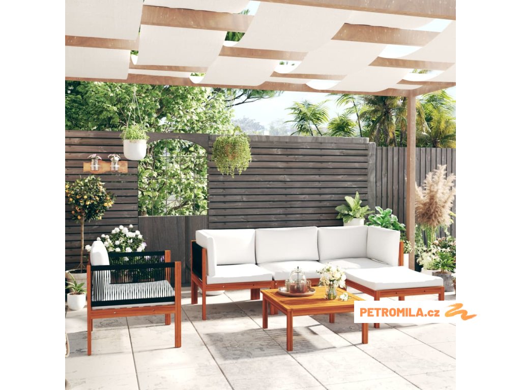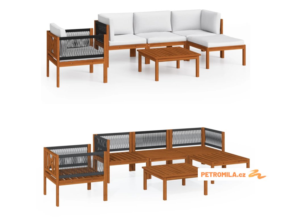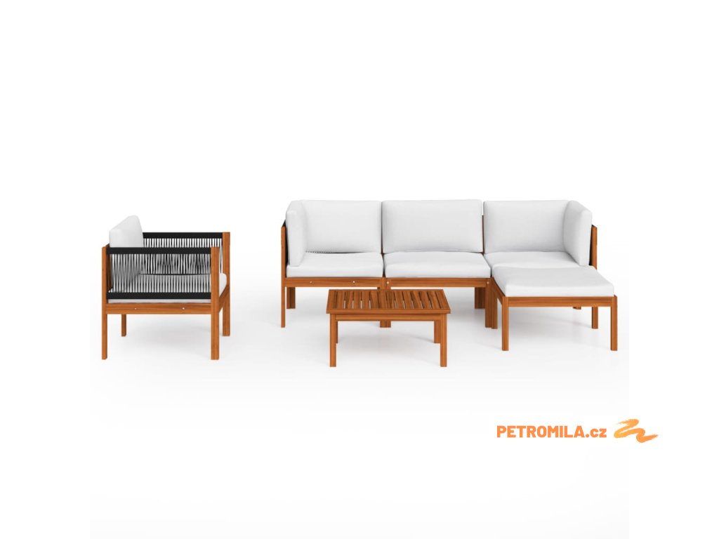 6dílná zahradní sedací souprava s polštáři krémové dřevo akácie a provaz