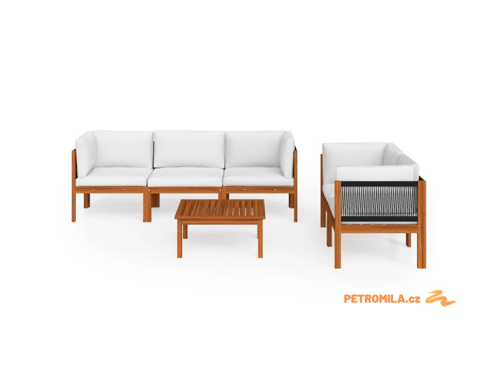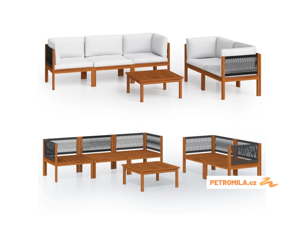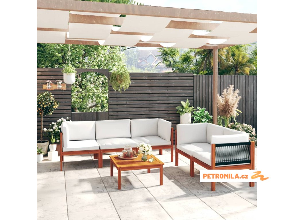 6dílná zahradní sedací souprava s polštáři krémové dřevo akácie a provaz
