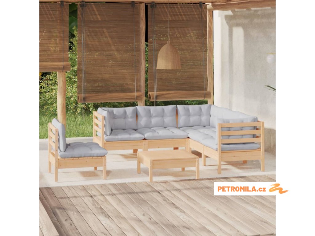 6dílná zahradní sedací souprava s šedými poduškami borovice