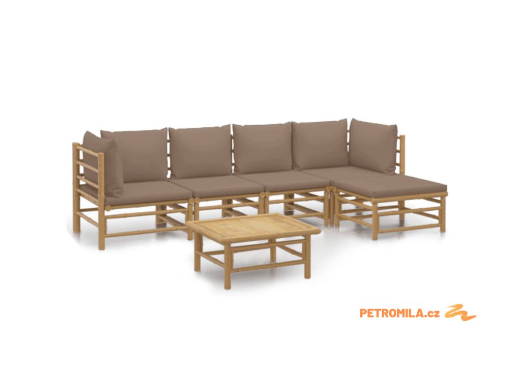 6dílná zahradní sedací souprava s taupe poduškami bambus