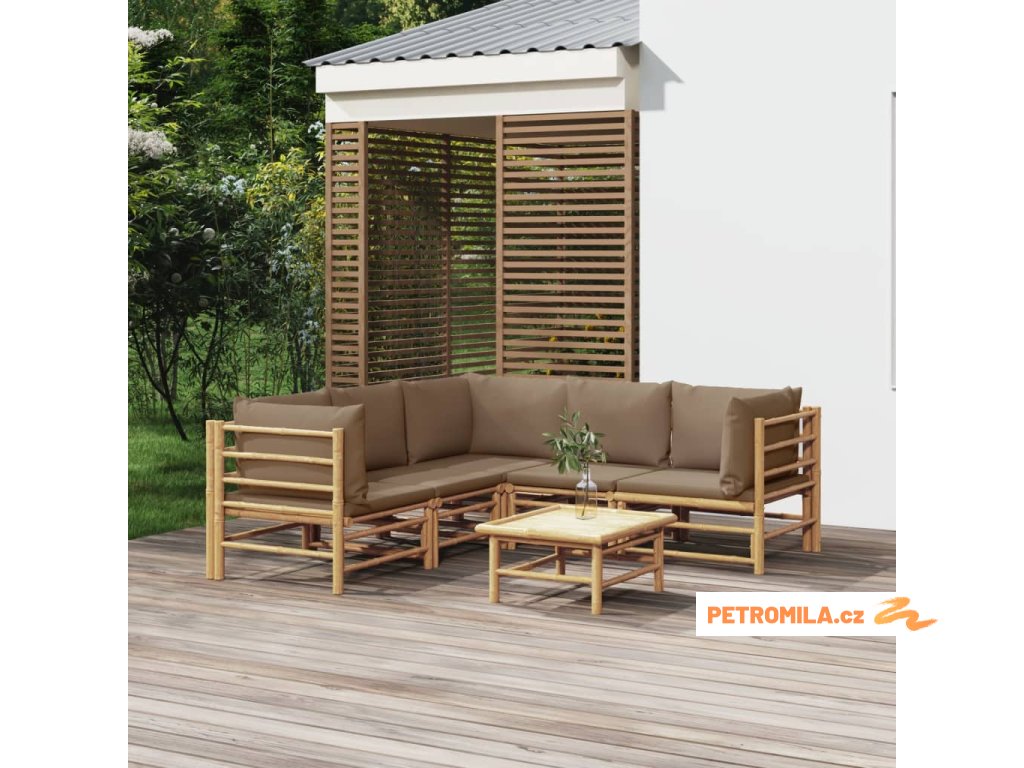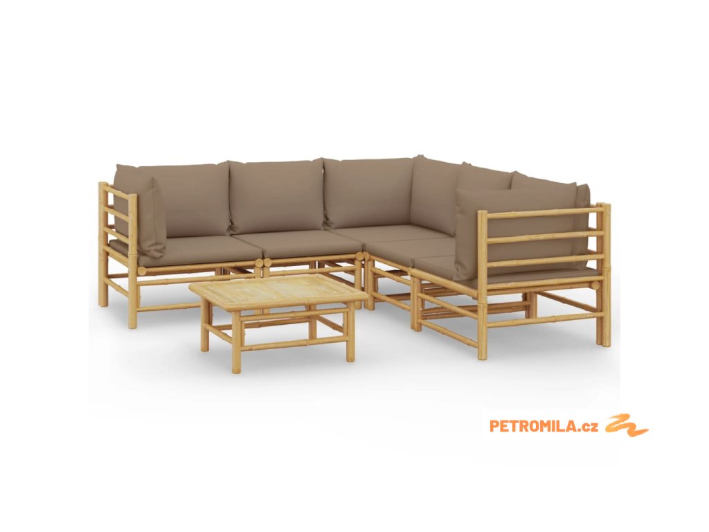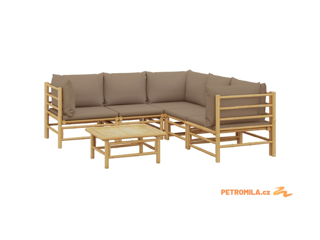 6dílná zahradní sedací souprava s taupe poduškami bambus