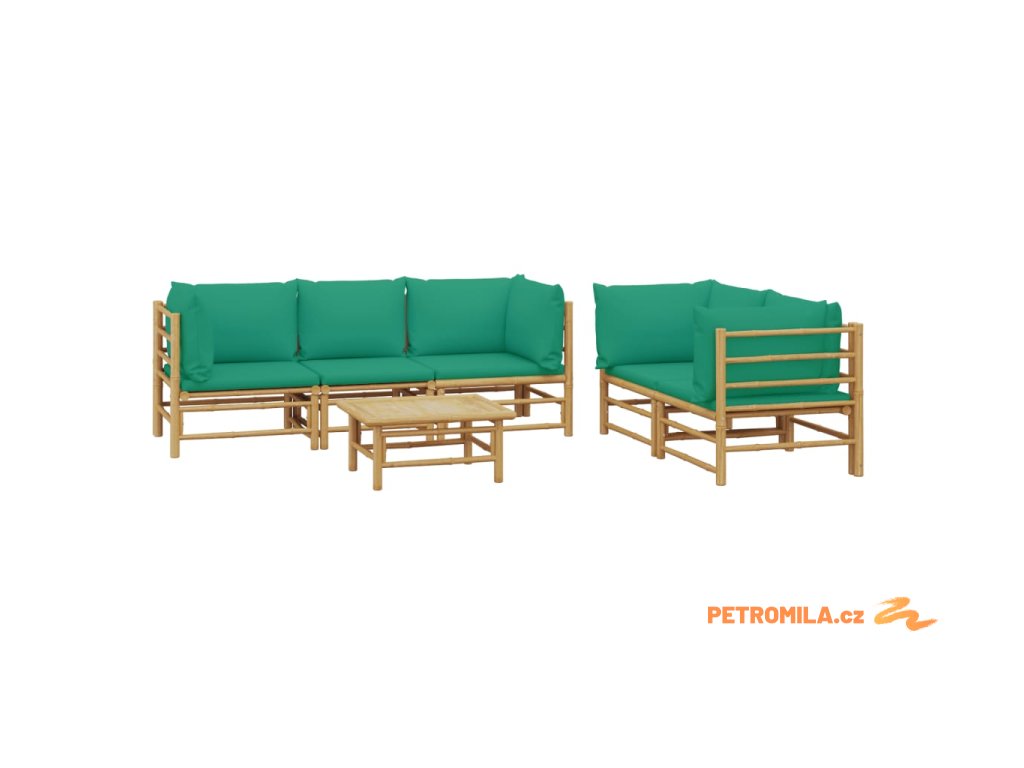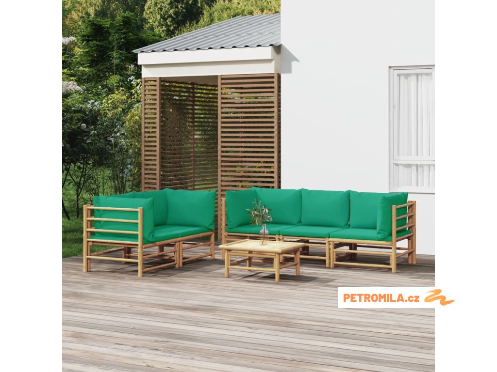 6dílná zahradní sedací souprava se zelenými poduškami bambus