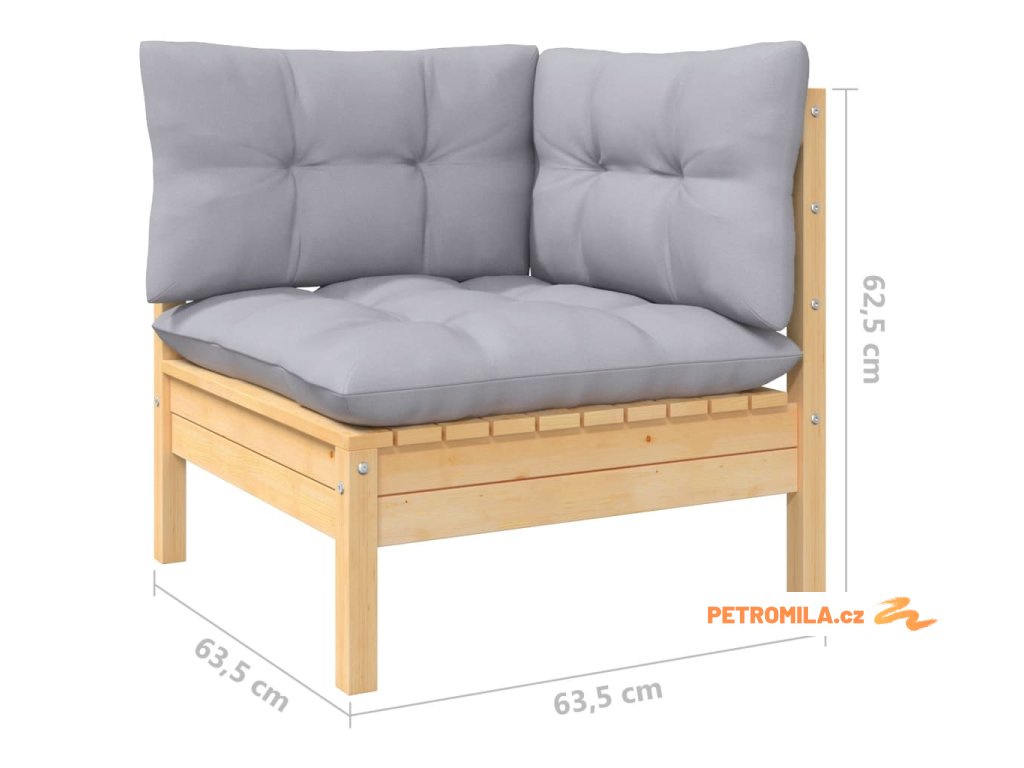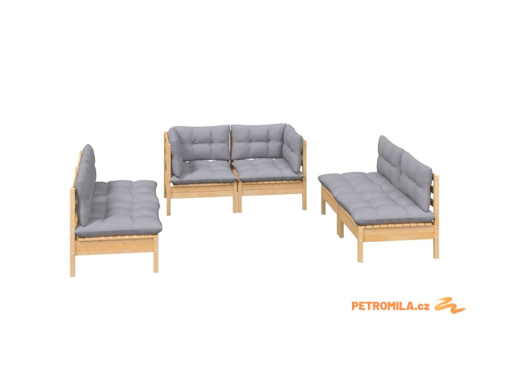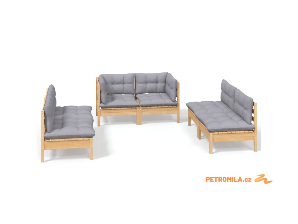 6dílná zahradní sedací souprava šedé podušky masivní borovice