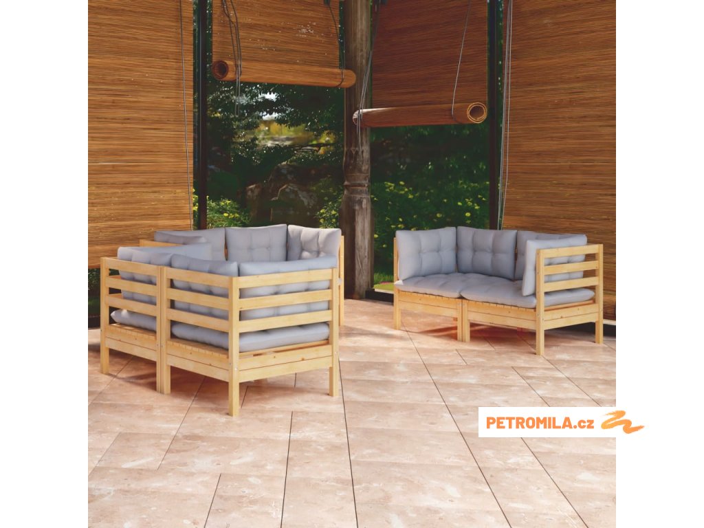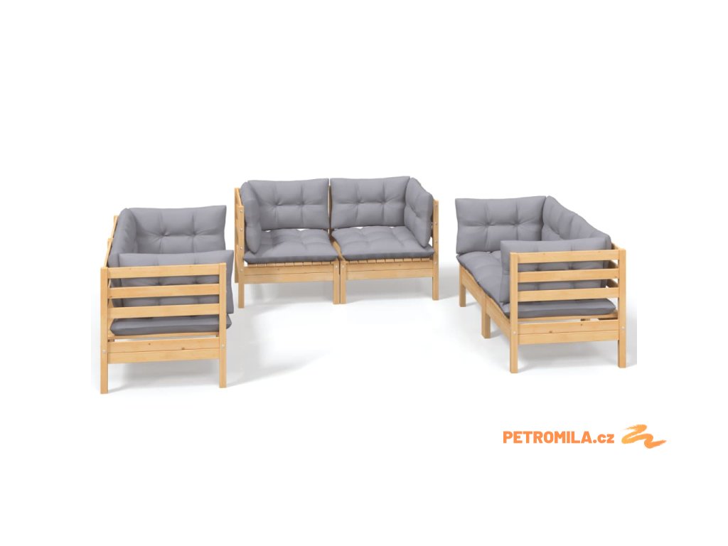 6dílná zahradní sedací souprava šedé podušky masivní borovice