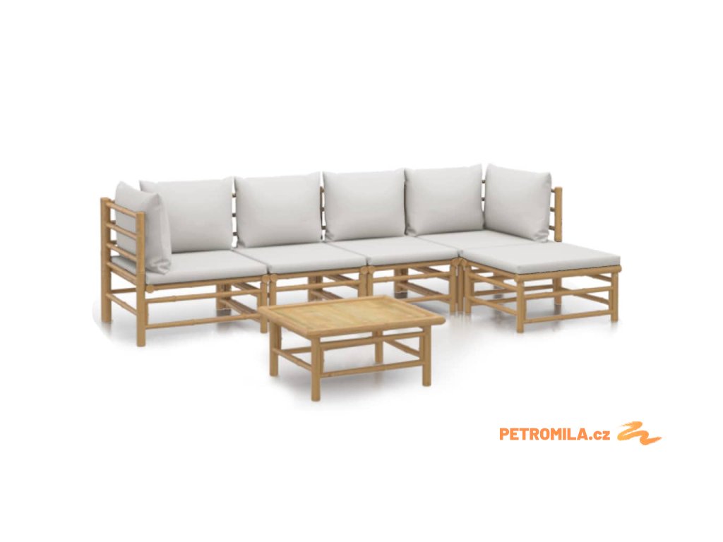 6dílná zahradní sedací souprava světle šedé podušky bambus