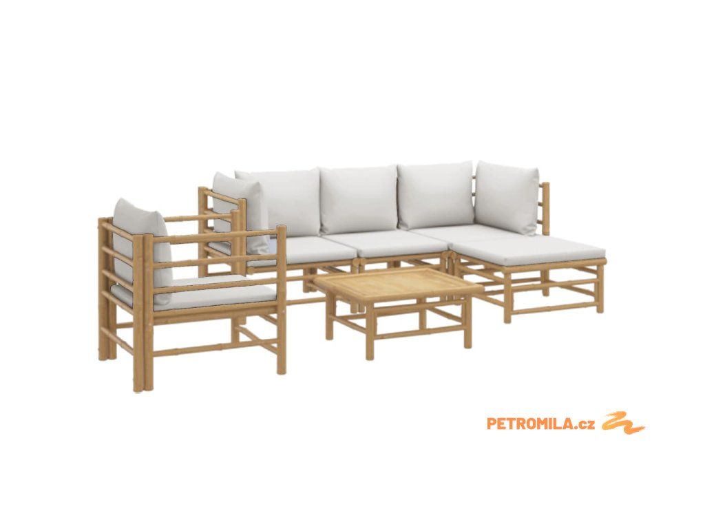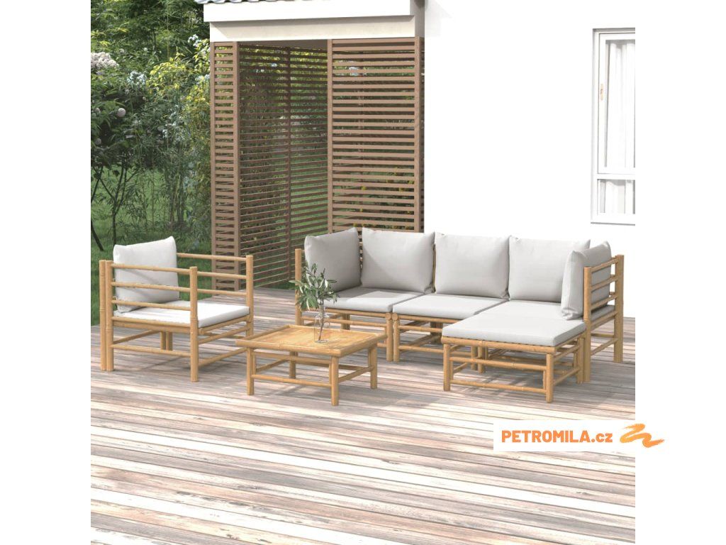 6dílná zahradní sedací souprava světle šedé podušky bambus