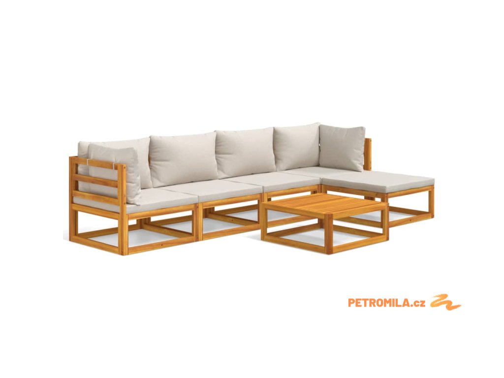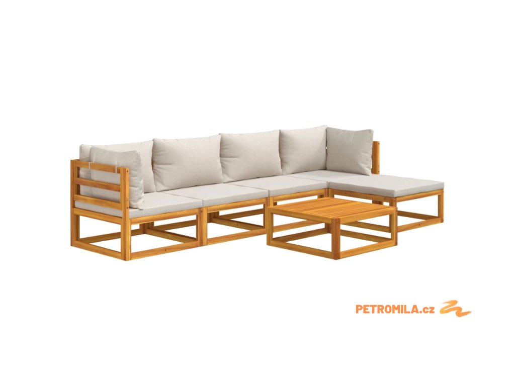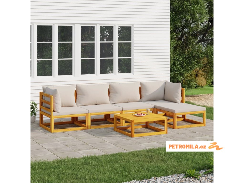 6dílná zahradní sedací souprava světle šedé podušky masiv