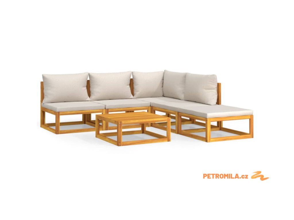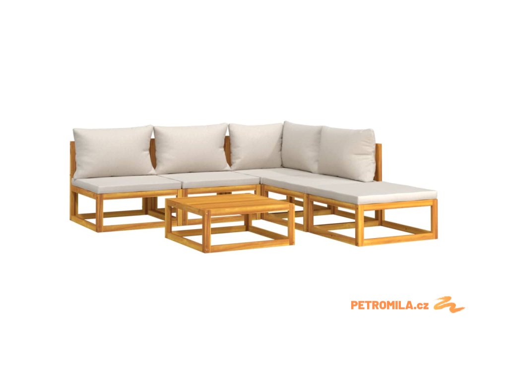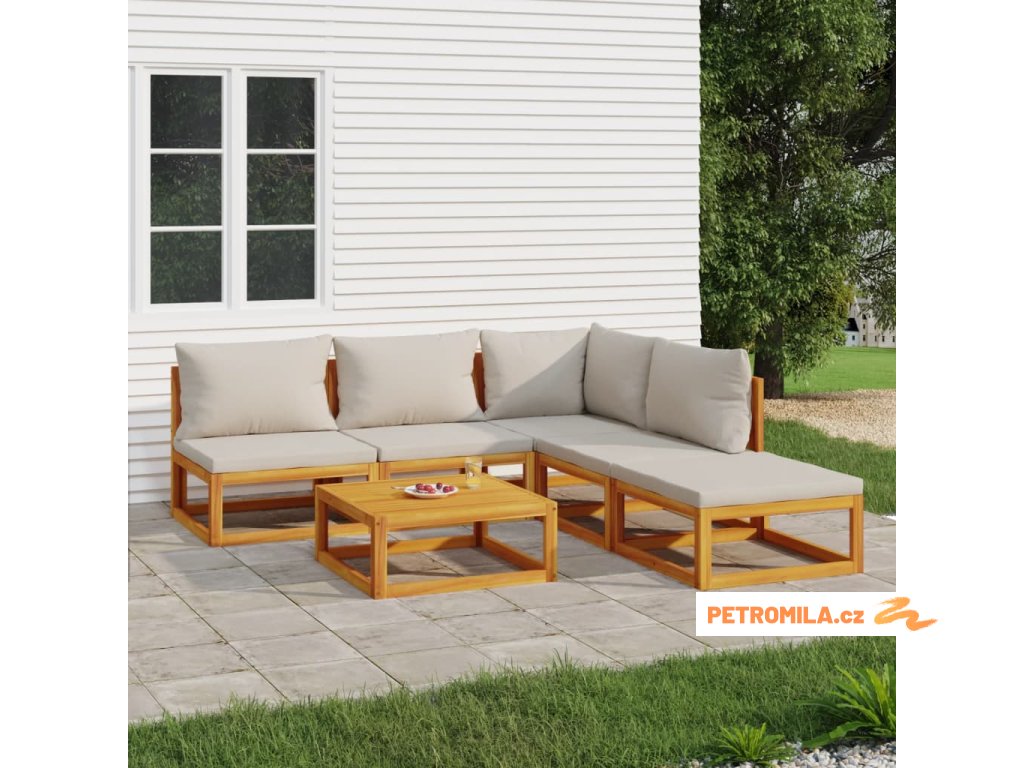 6dílná zahradní sedací souprava světle šedé podušky masiv