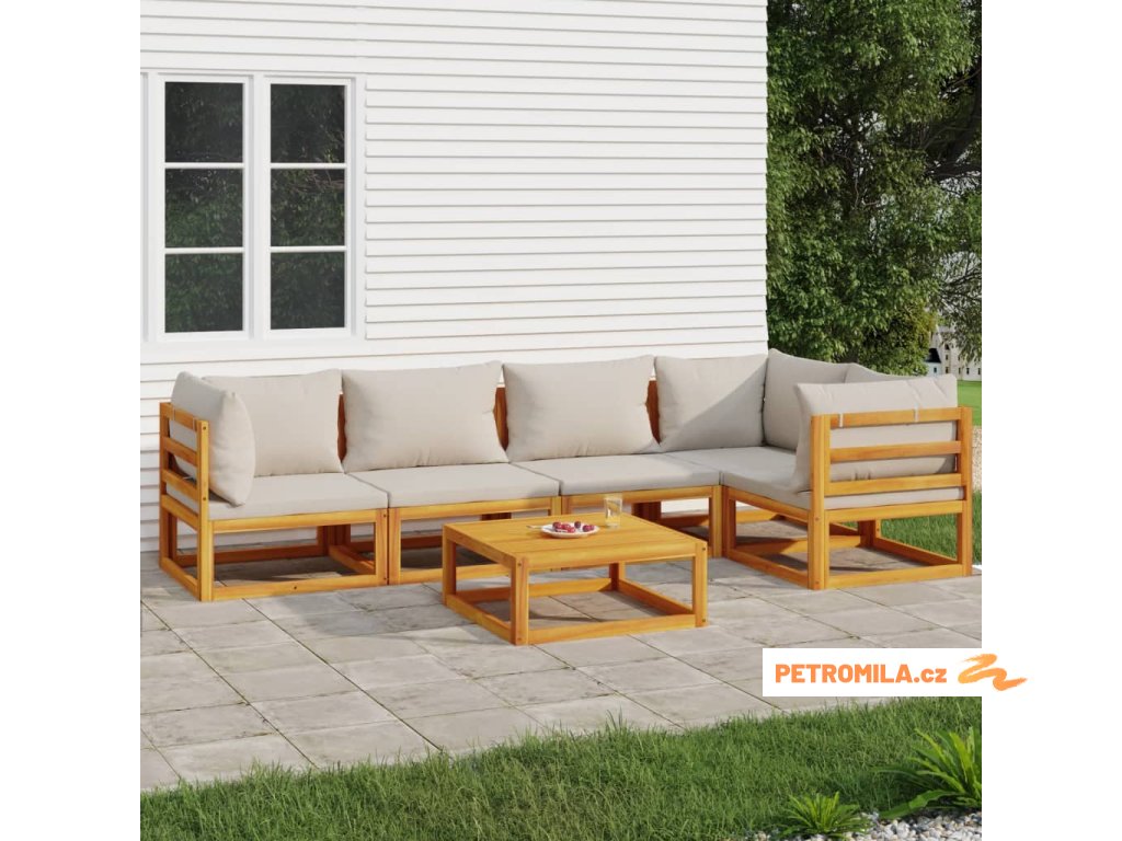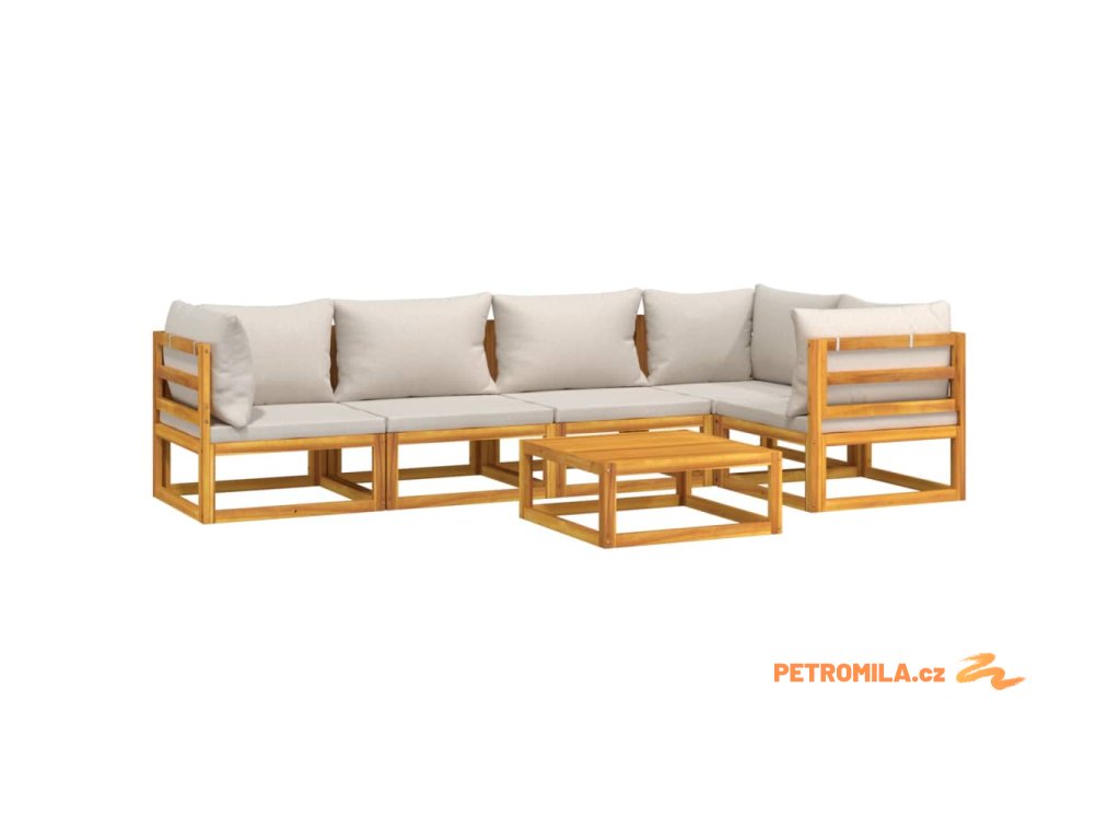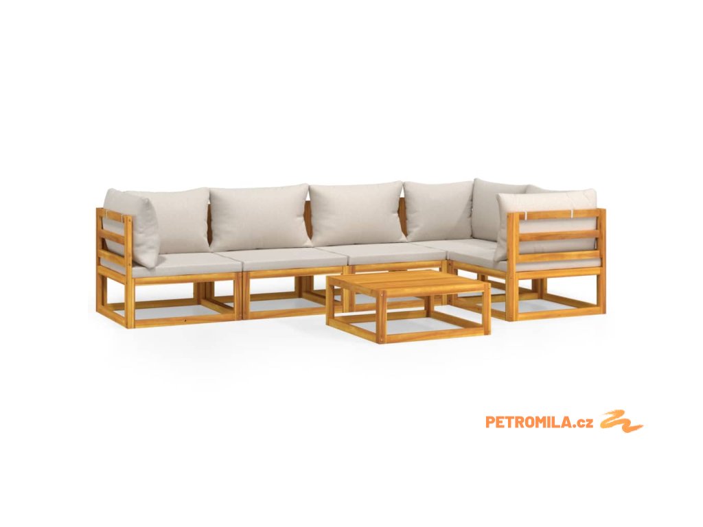 6dílná zahradní sedací souprava světle šedé podušky masiv