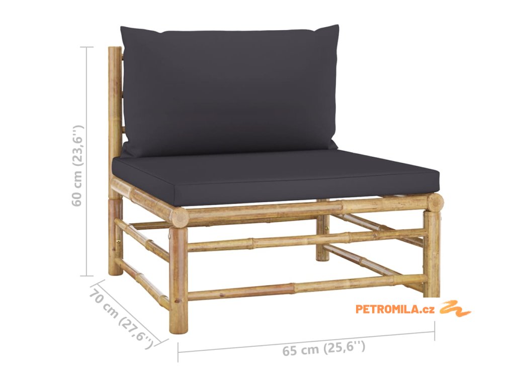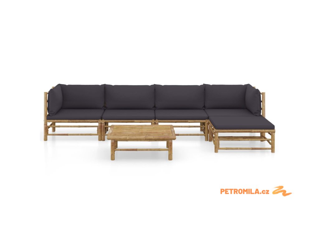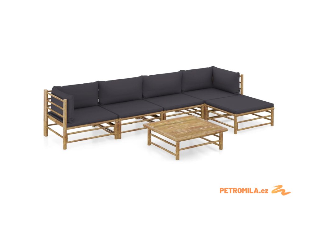 6dílná zahradní sedací souprava + tmavě šedé podušky bambus