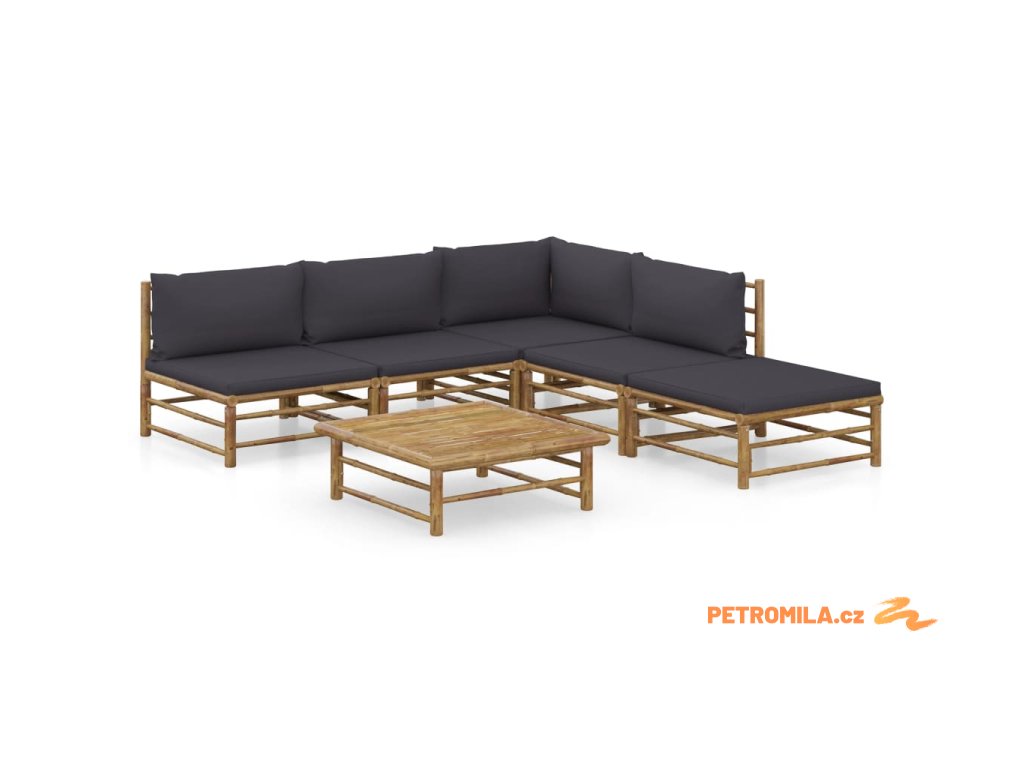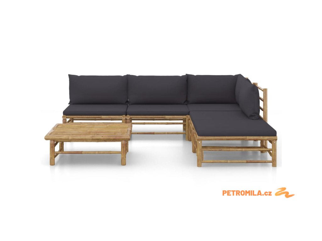 6dílná zahradní sedací souprava + tmavě šedé podušky bambus