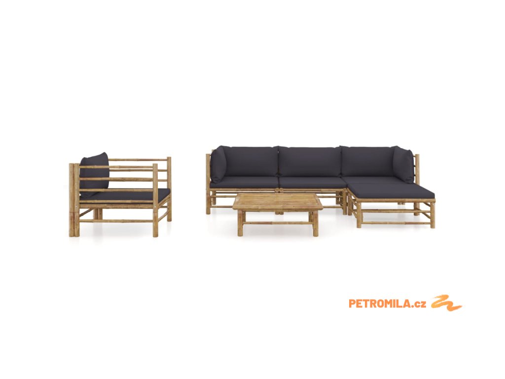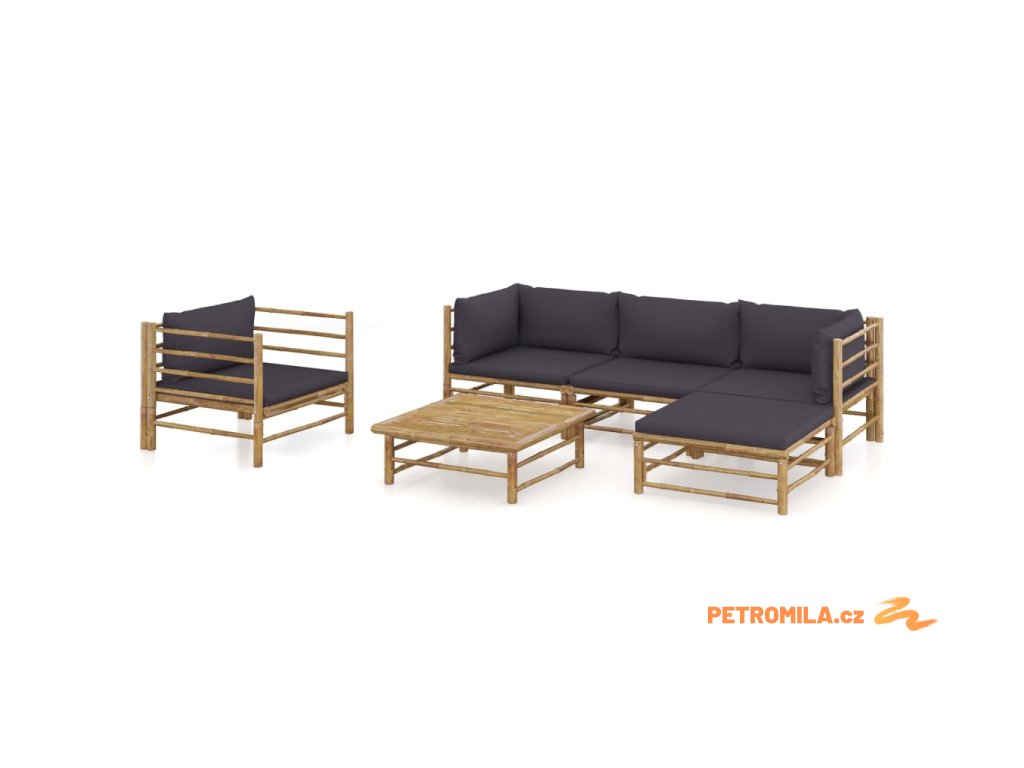 6dílná zahradní sedací souprava + tmavě šedé podušky bambus