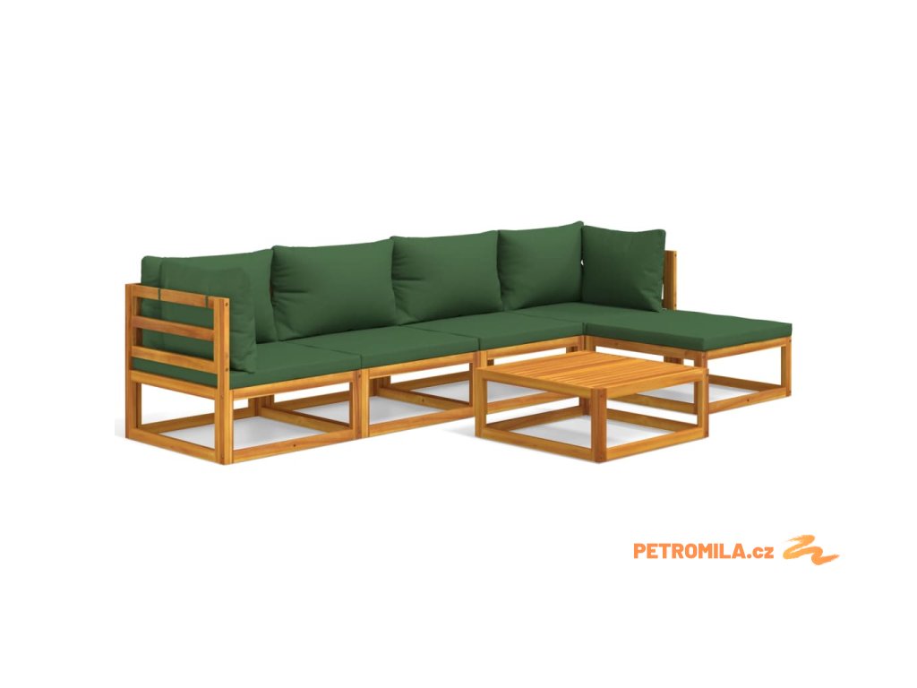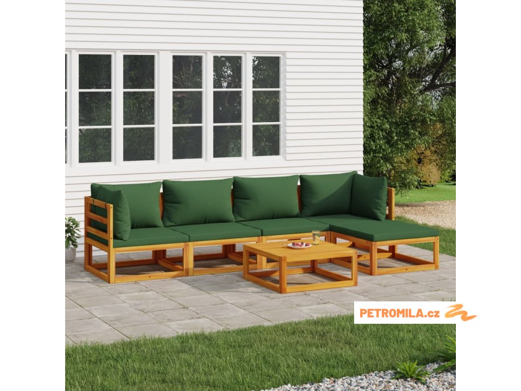 6dílná zahradní sedací souprava zelené podušky masivní dřevo