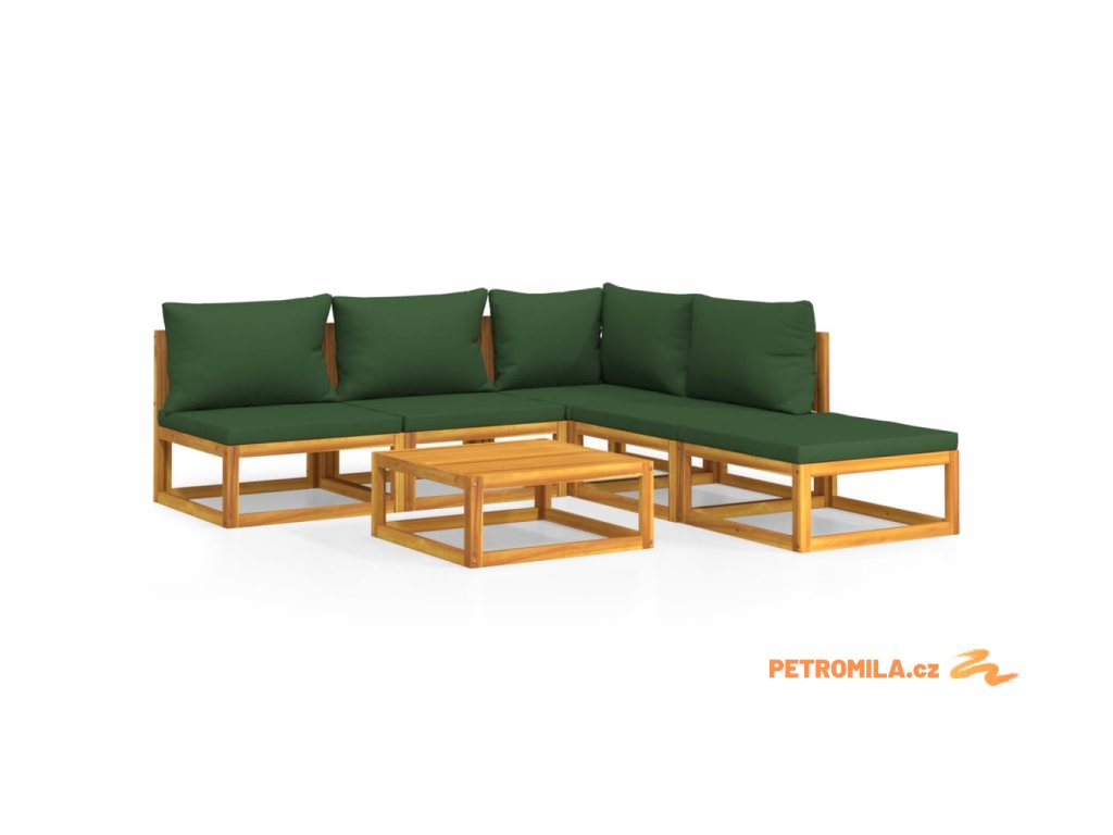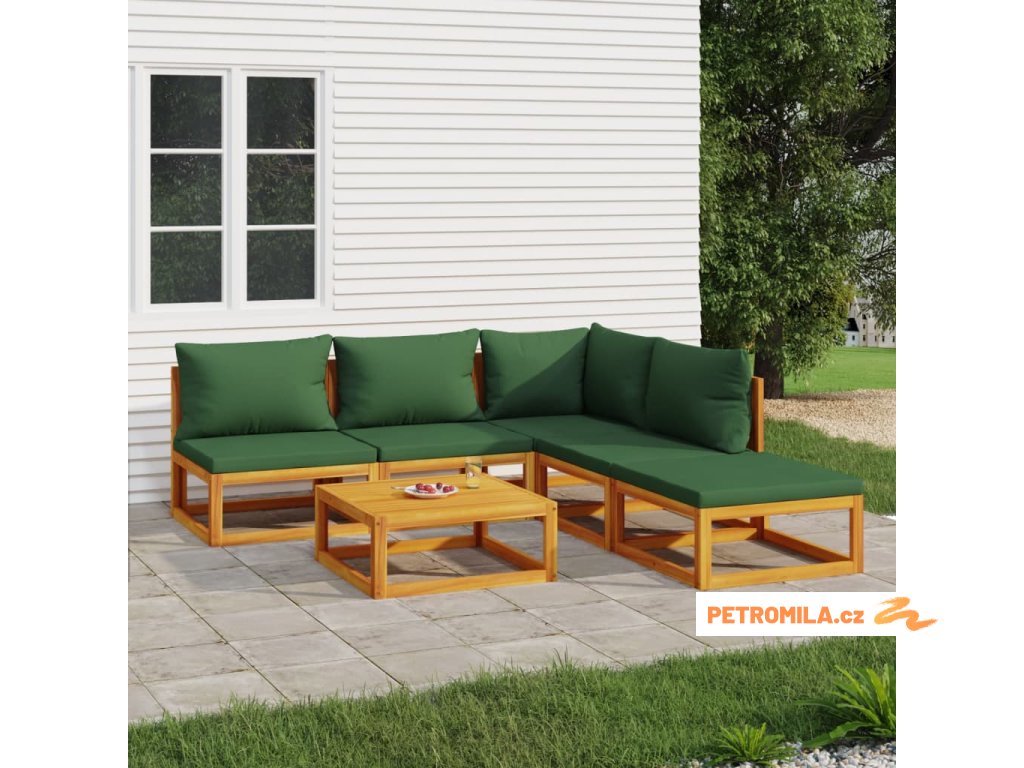 6dílná zahradní sedací souprava zelené podušky masivní dřevo