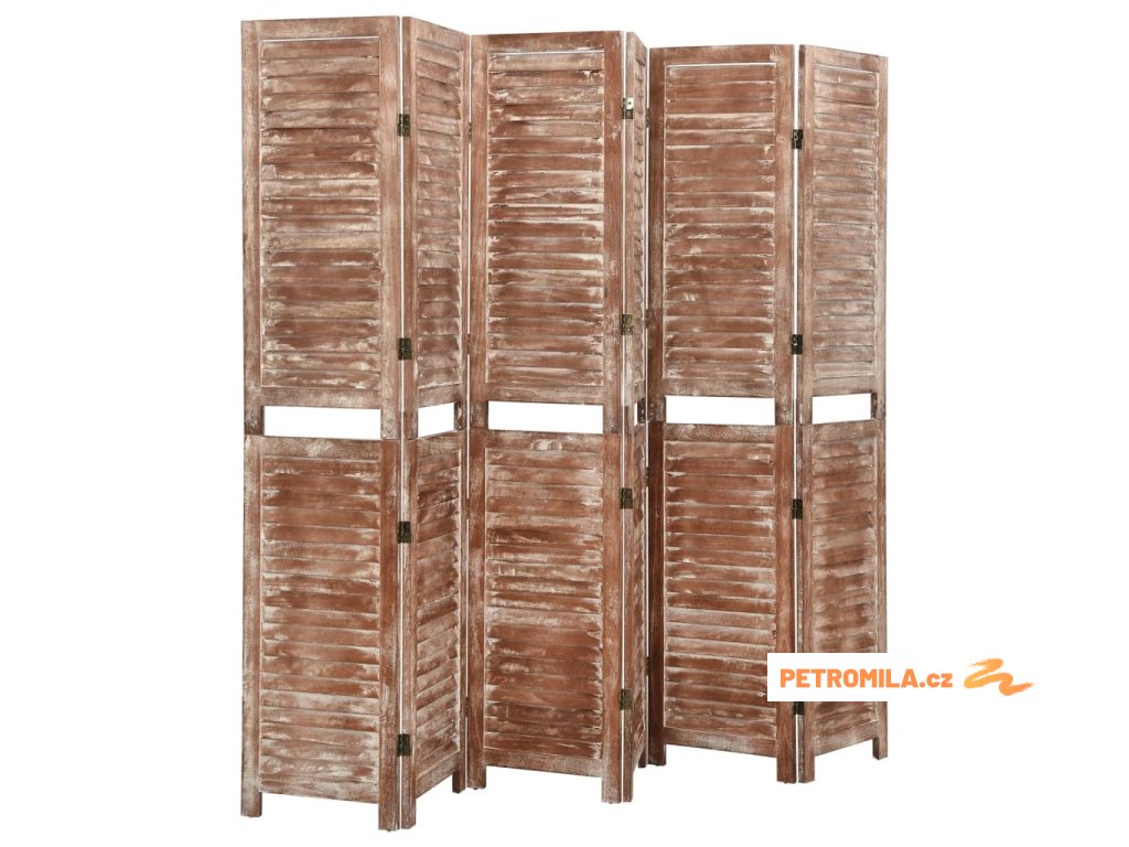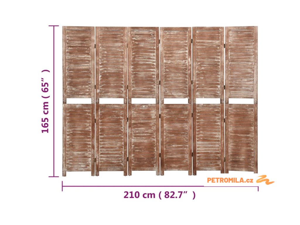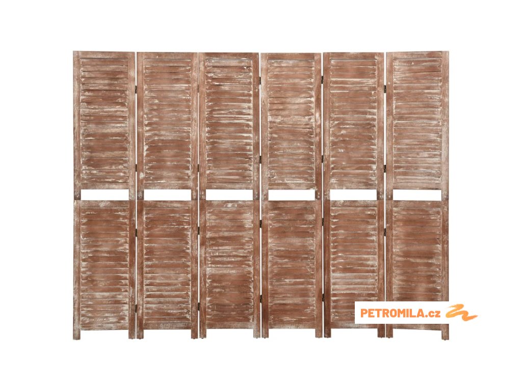 6dílný paraván hnědý 210 x 165 cm masivní dřevo pavlovnie