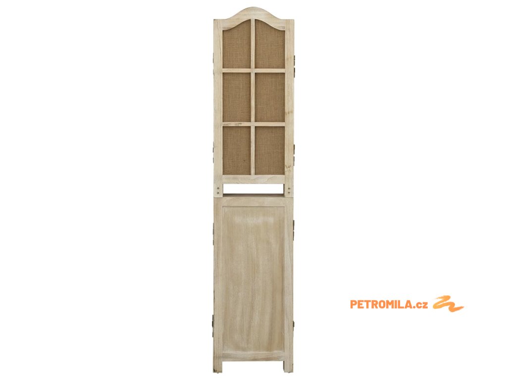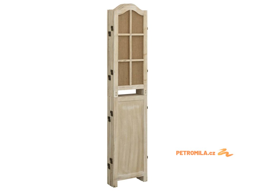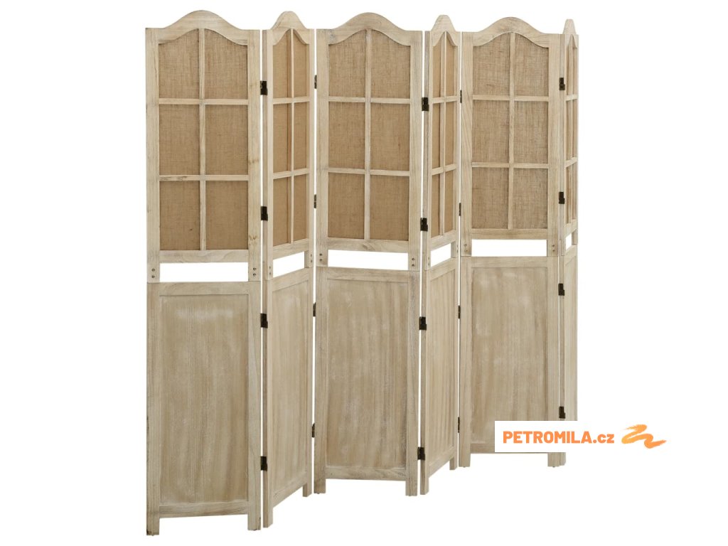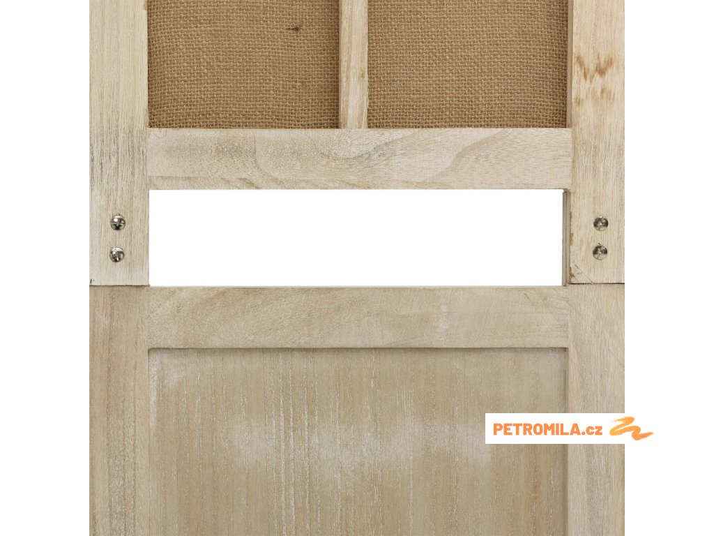 - Stabilní konstrukce: Zástěna má pevný rám ze dřeva pavlovnie a je potažena odolnou textilií. Dřevěné rámy zajišťují odolnost a stabilitu.