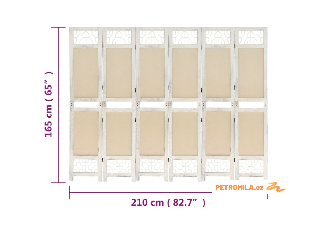 Tento volně stojící a elegantní 6dílný paraván lze použít k dekoraci nebo jako dělicí stěnu. Skvěle se hodí v ložnici pro vytvoření samostatné soukromé šatny nebo pro oddělení části místnosti. Kromě toho je dělicí příčka vybavena pevným rámem ze dřeva pavlovnie a MDF a je potažena odolnou látkou. Dá se také snadno složit, aby se ušetřilo místo, když se nepoužívá.
