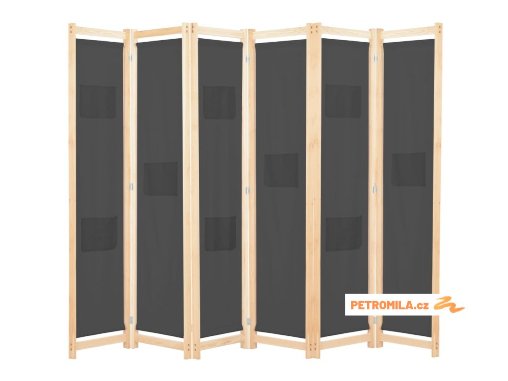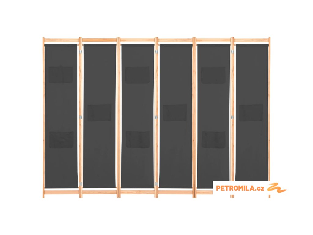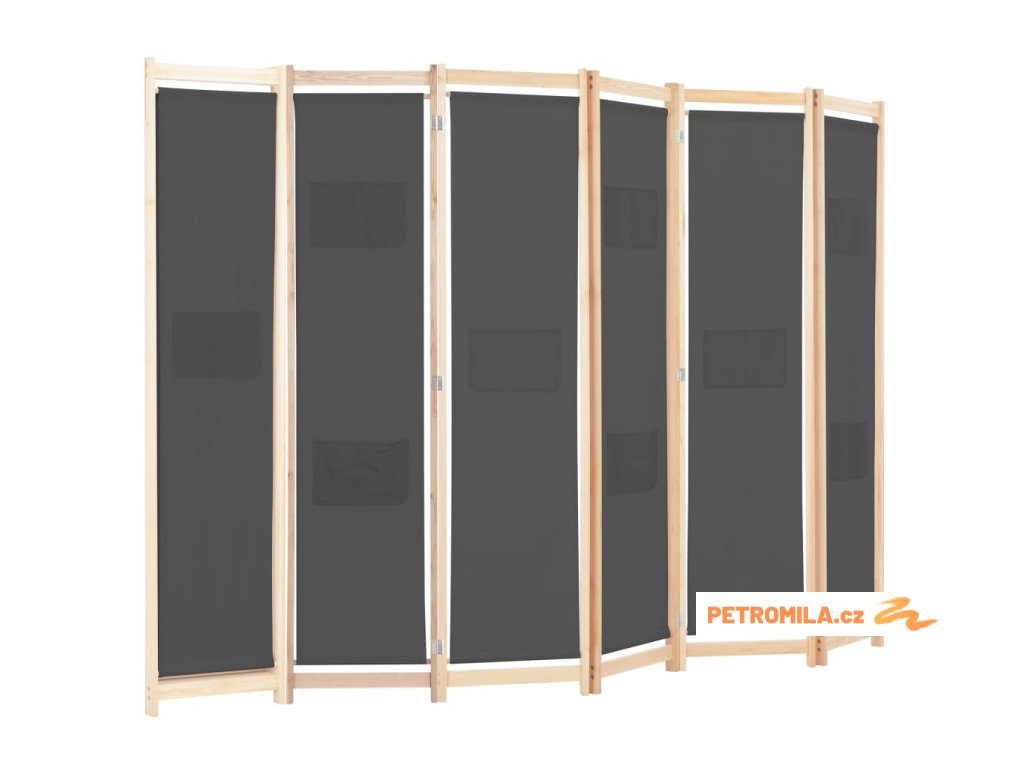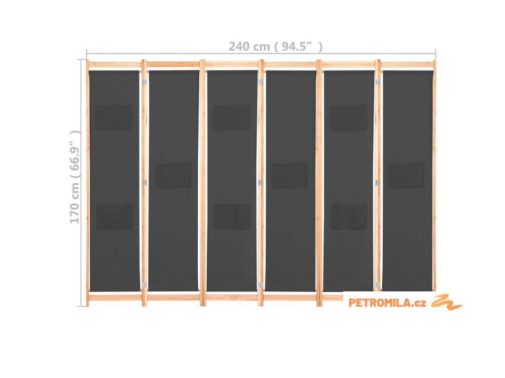 6dílný paraván šedý 240 x 170 x 4 cm textil