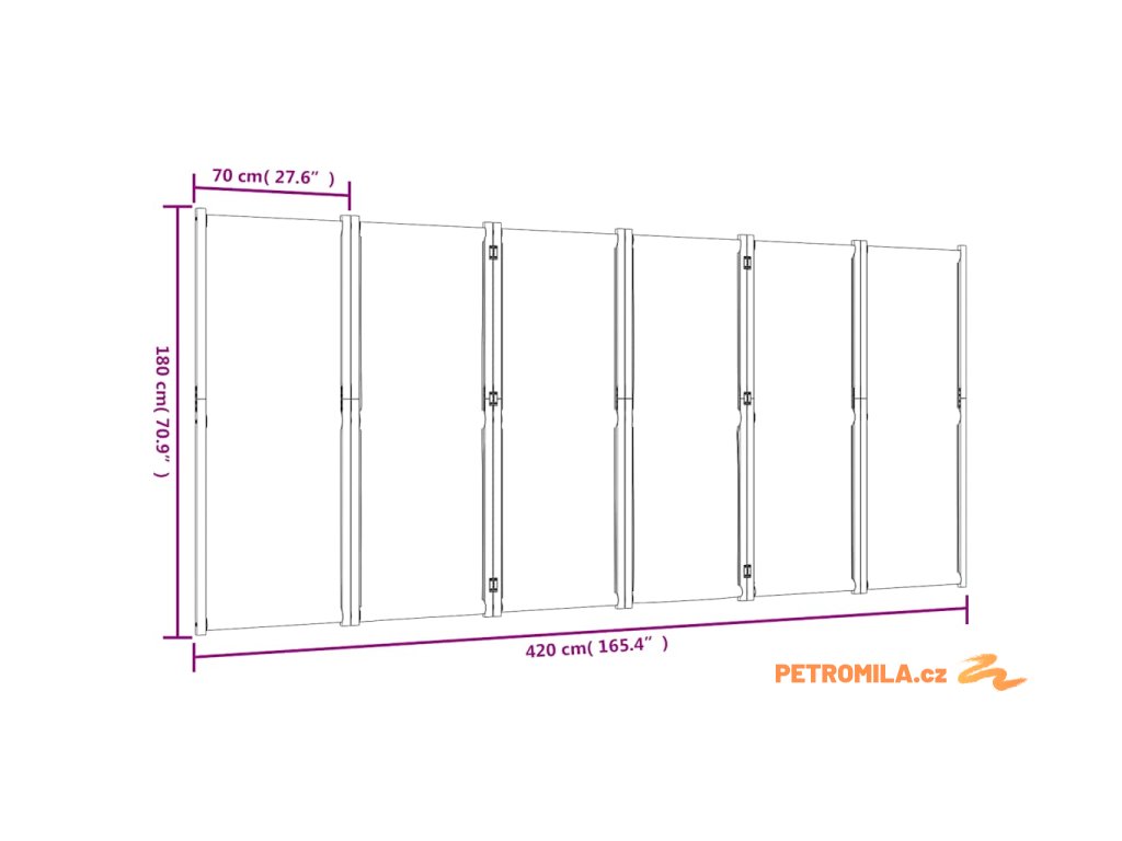 - Rozměry každého panelu: 70 x 180 cm (Š x V)