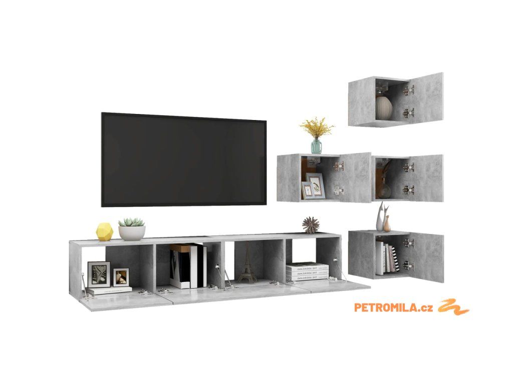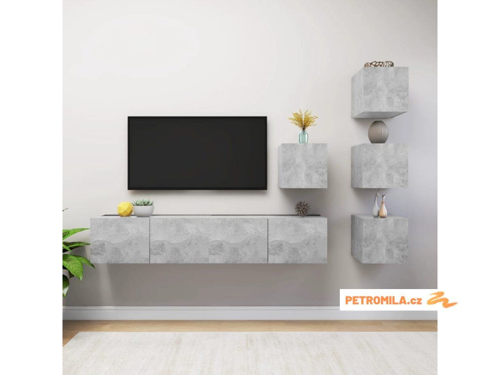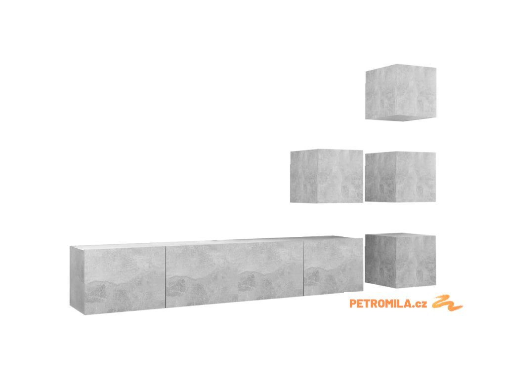 6dílný set TV skříněk betonově šedý dřevotříska