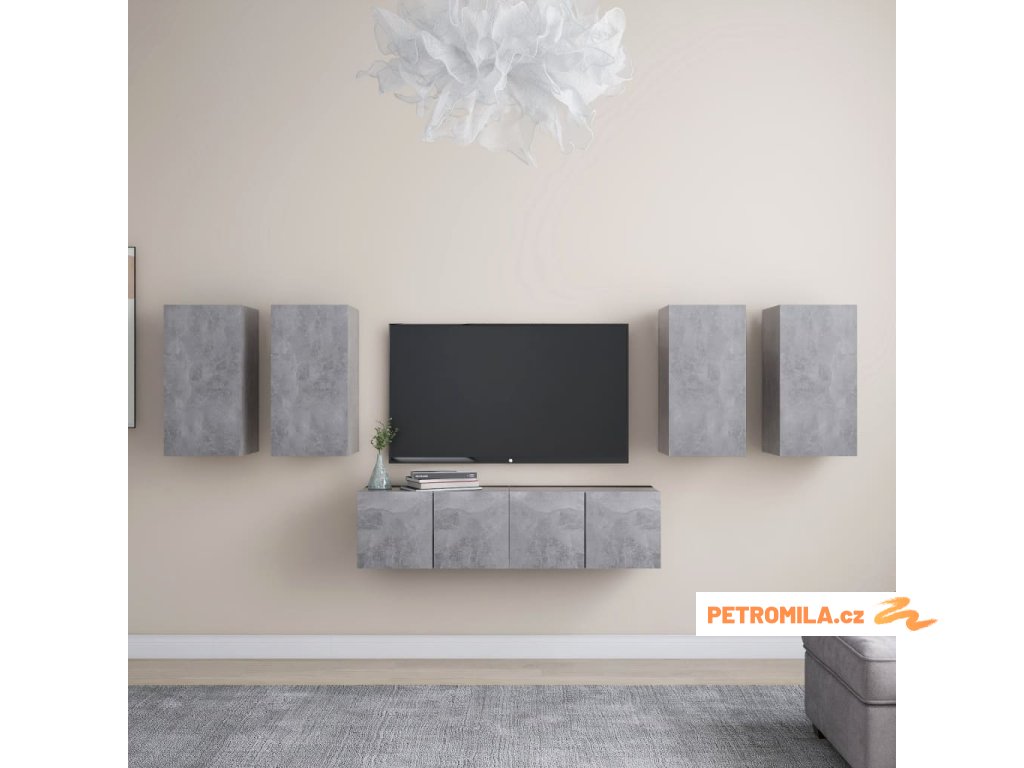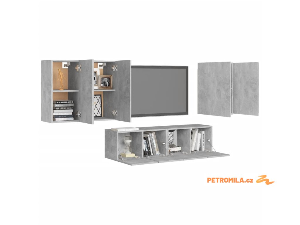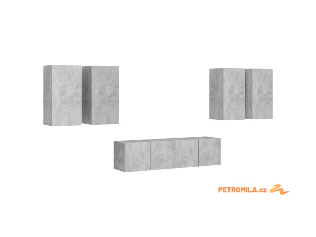 6dílný set TV skříněk betonově šedý dřevotříska
