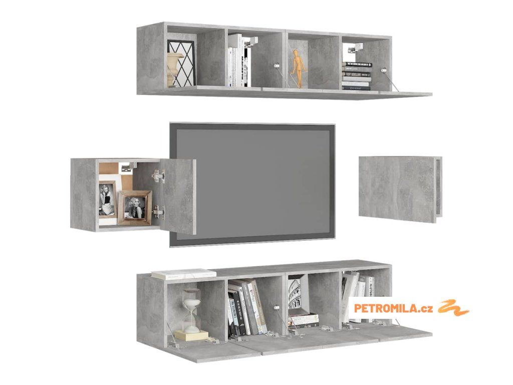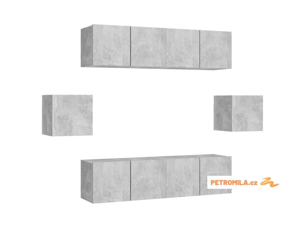 6dílný set TV skříněk betonově šedý kompozitní dřevo