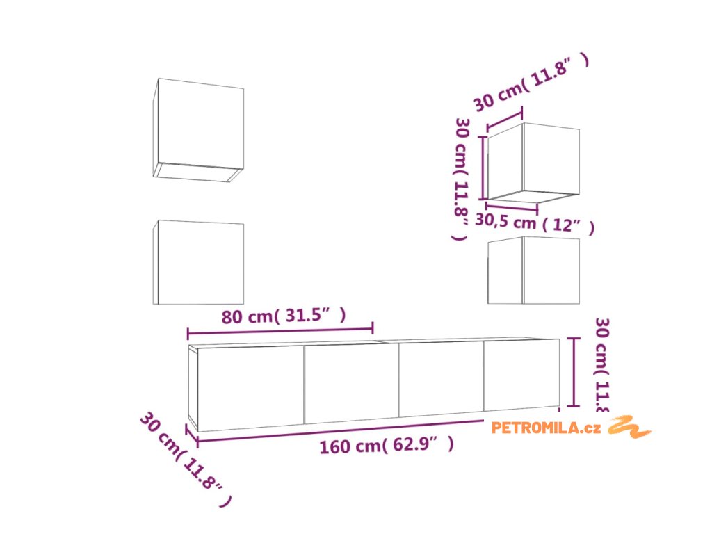 - 4x TV skříňka: 30,5 x 30 x 30 cm (Š x H x V)