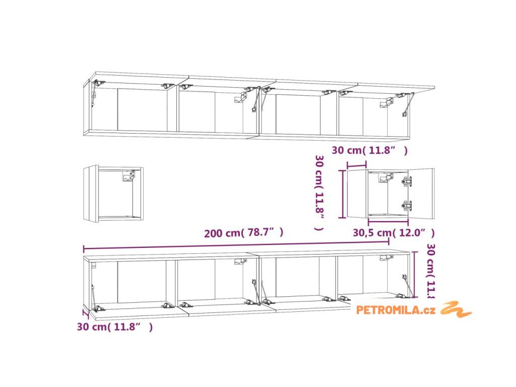 - 4x TV skříňka: 100 x 30 x 30 cm (Š x H x V)