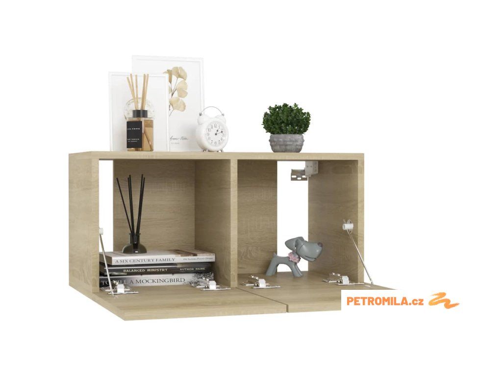 Televizní skříňka se montuje na zeď a bude nadčasovým doplňkem vašeho domova. Nabízí spoustu úložných přihrádek, které jsou ideálním místem pro uložení všech vašich knih, časopisů, DVD a dalších věcí. Stereo skříňka se snadno udržuje a čistí vlhkým hadříkem.