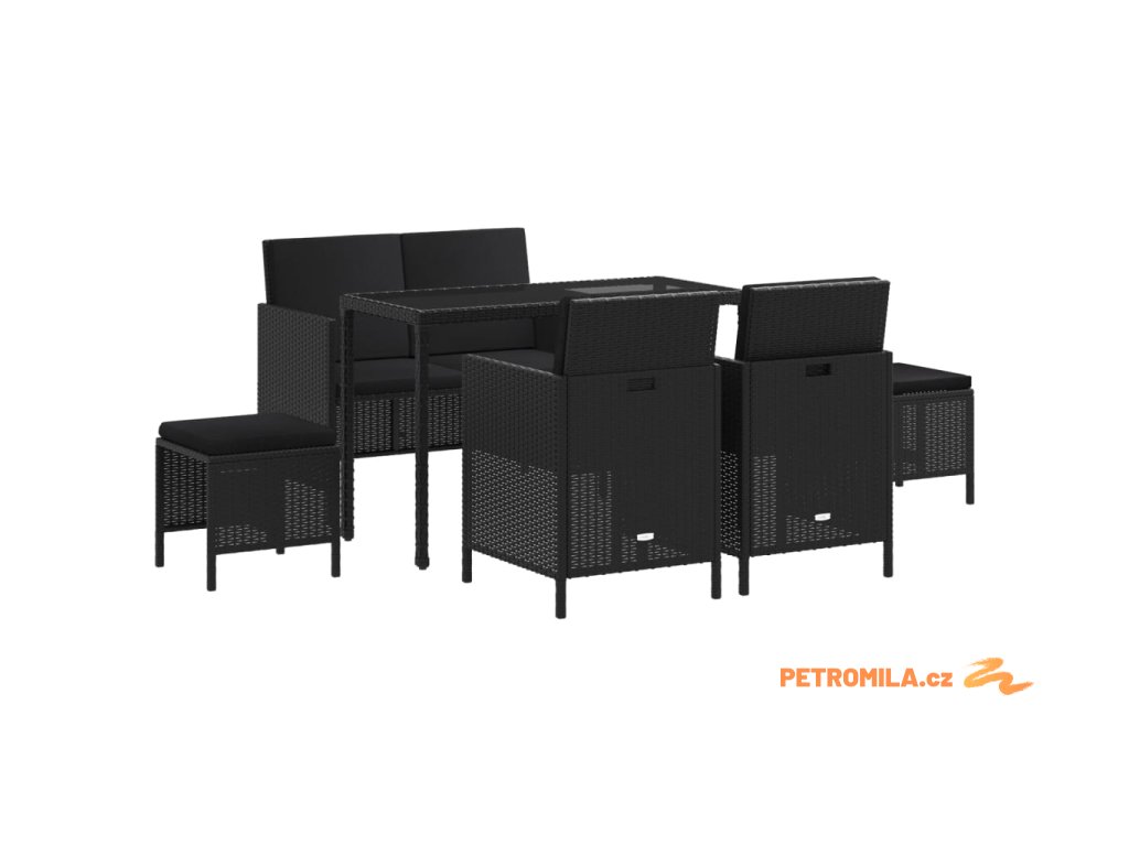 6dílný zahradní jídelní set s poduškami černý polyratan