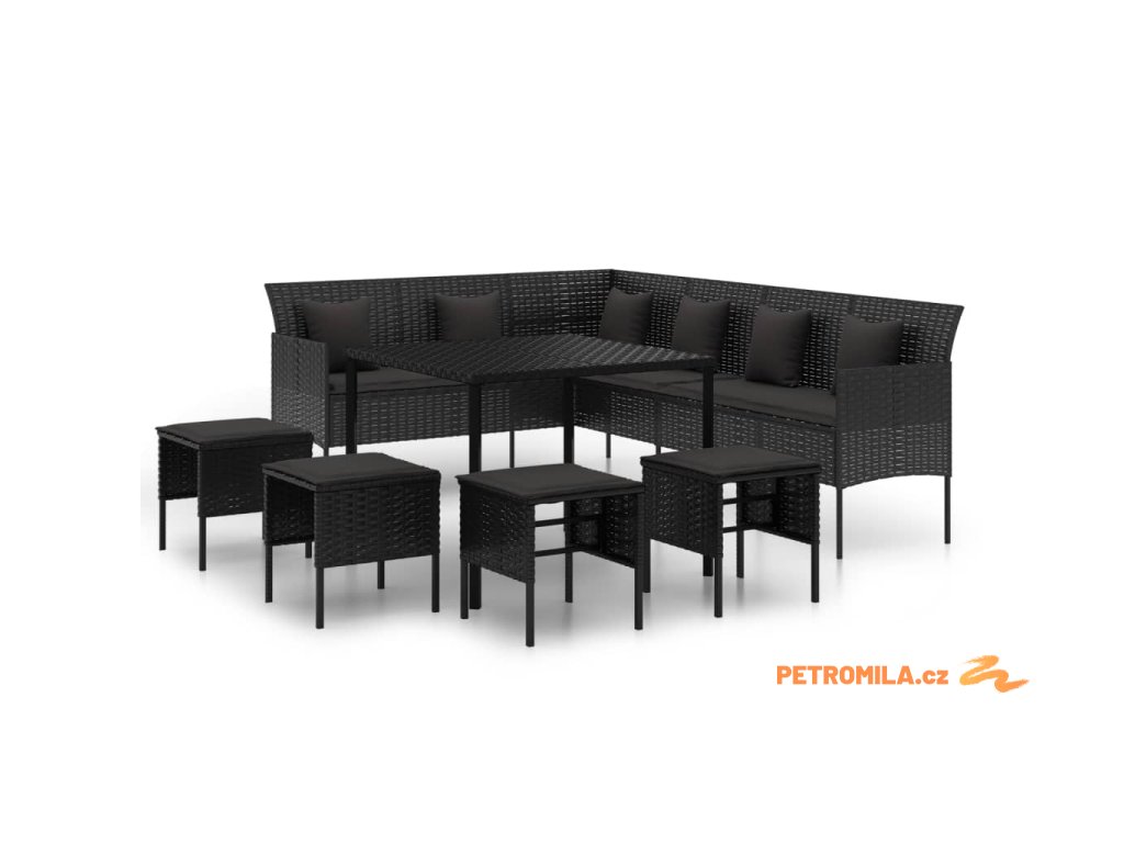 6dílný zahradní jídelní set s poduškami černý polyratan