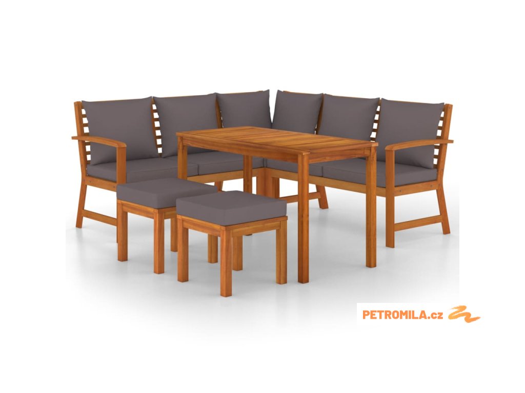 6dílný zahradní jídelní set s poduškami masivní akácie