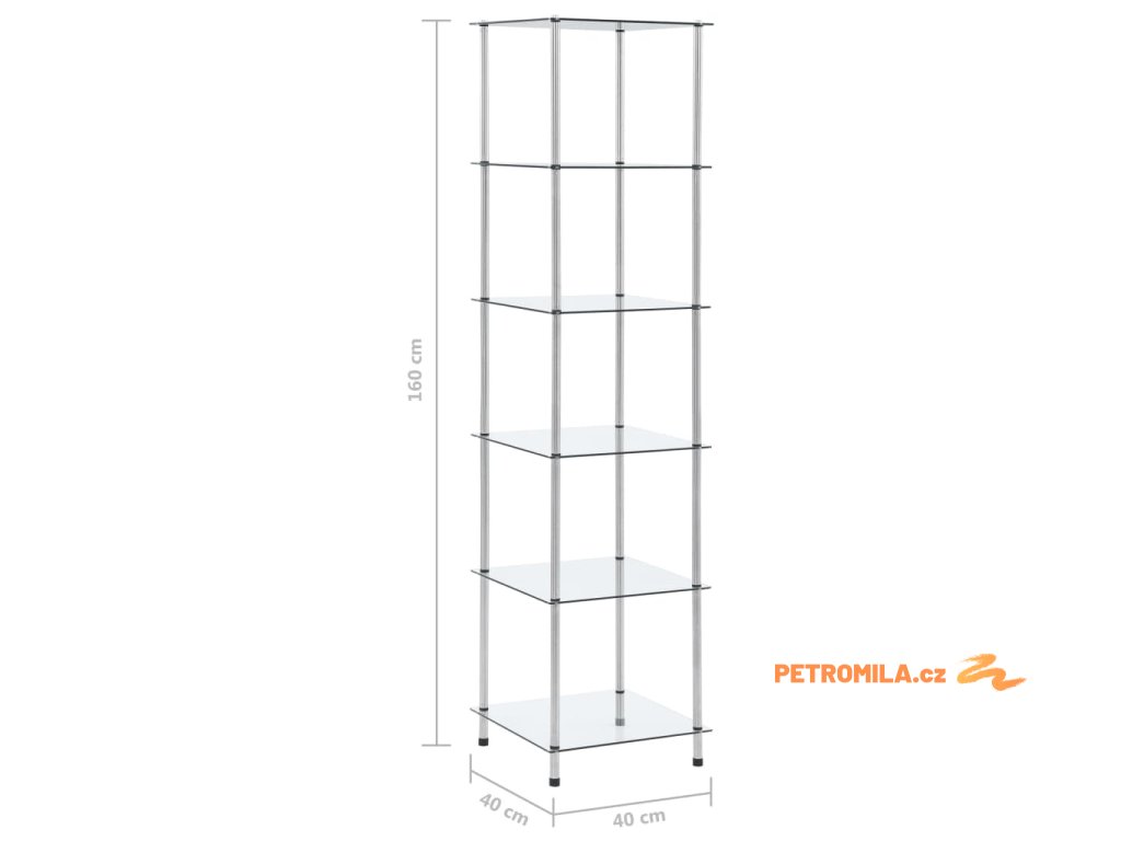 6patrová police průhledná 40 × 40 × 160 cm tvrzené sklo