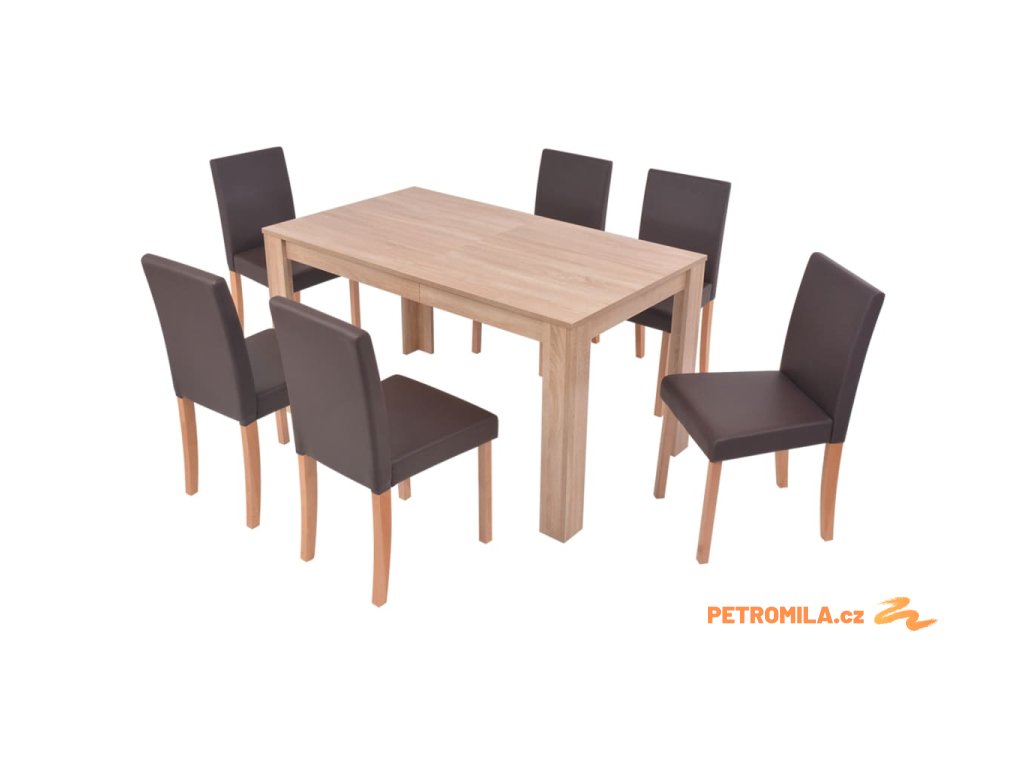 7dílná sada jídelního stolu a židlí, umělá kůže a dub, hnědá