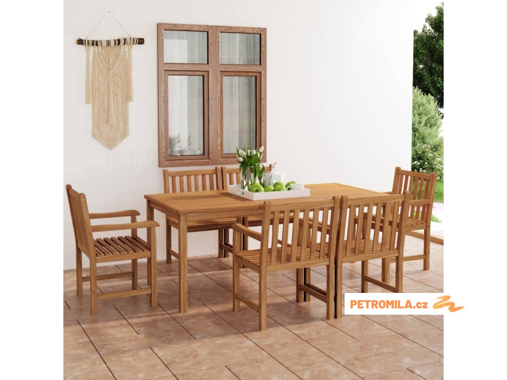 7dílná zahradní jídelní sada 180 x 90 cm masivní teakové dřevo