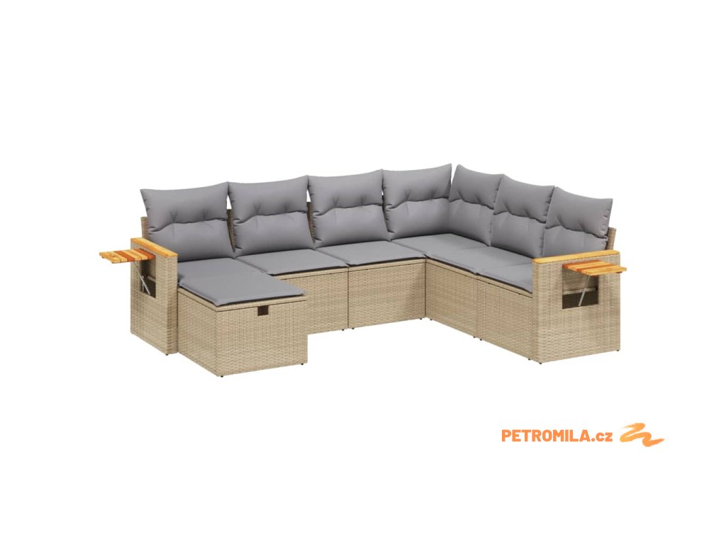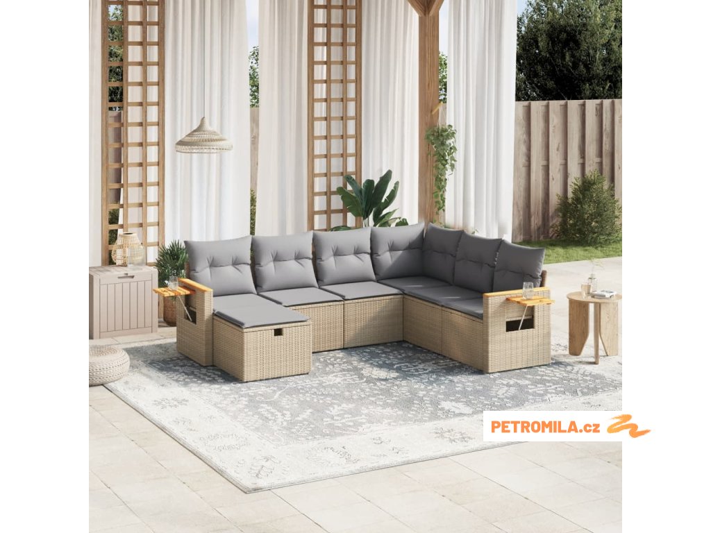 Sada zahradních pohovek s polštářem 7 pcs Béžová Poly ratan