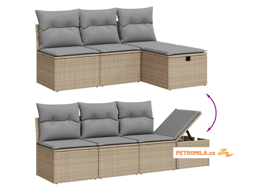 Sada zahradních pohovek s polštářem 8 pcs Béžová Poly ratan